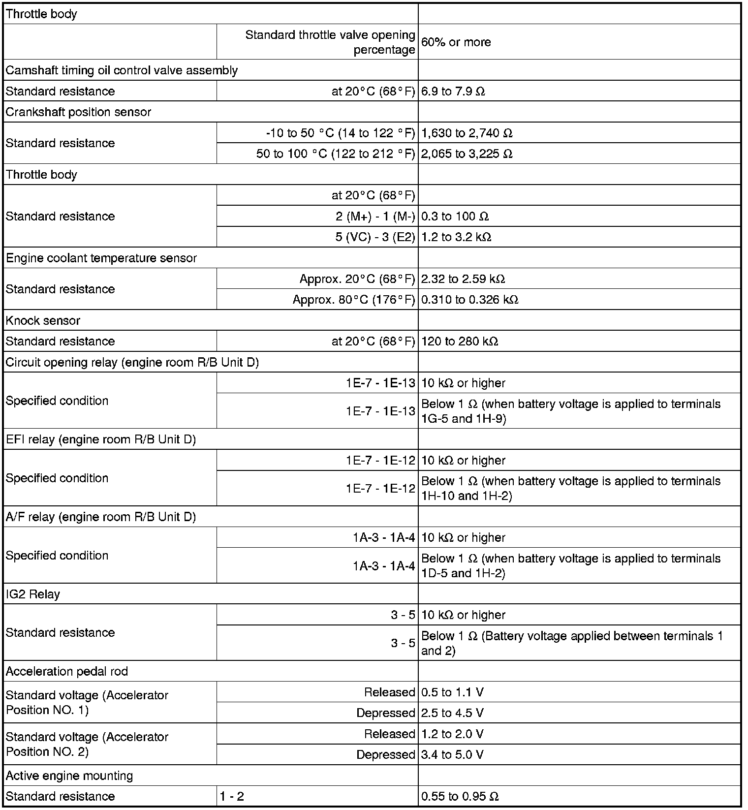 SERVICE SPECIFICATIONS: 2GR-FE ENGINE CONTROL SYSTEM: SERVICE DATA