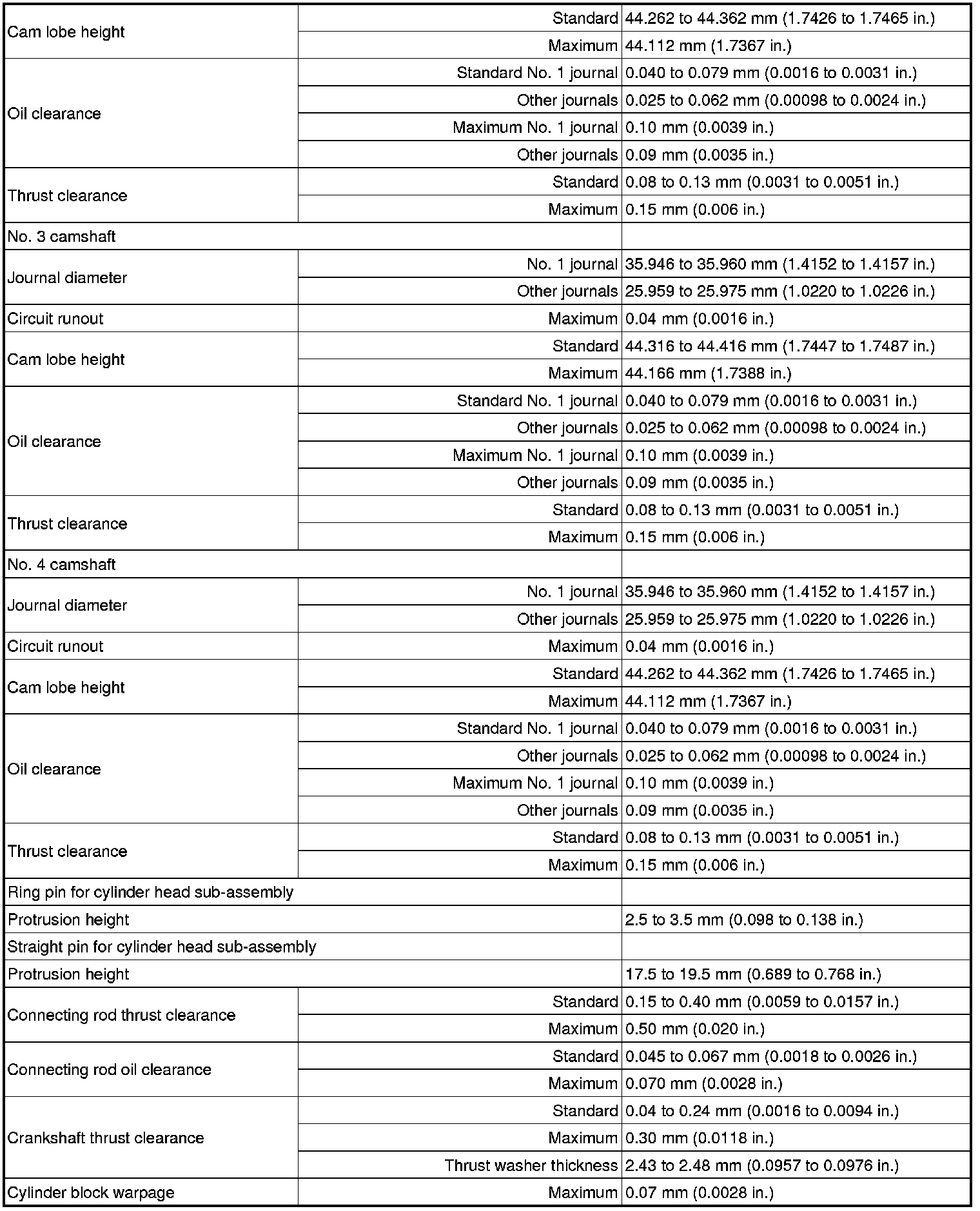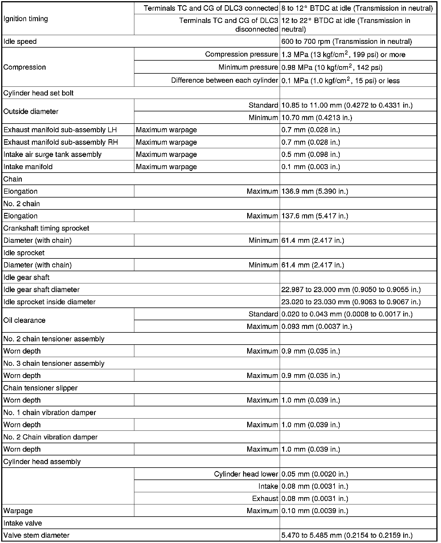 SERVICE SPECIFICATIONS: 2GR-FE ENGINE MECHANICAL: SERVICE DATA