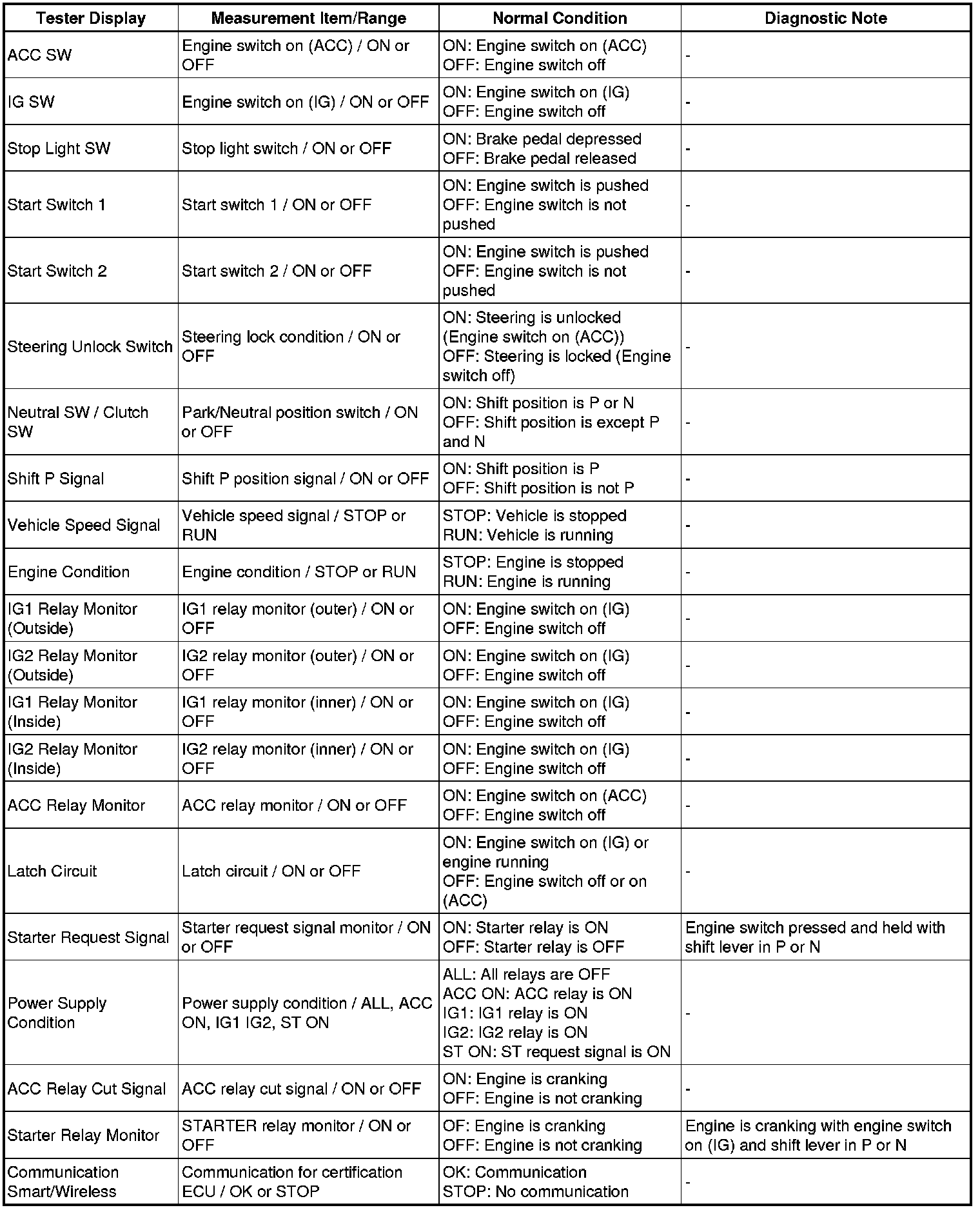 2GR-FE STARTING: SMART ACCESS SYSTEM WITH PUSH-BUTTON START: DATA LIST / ACTIVE TEST