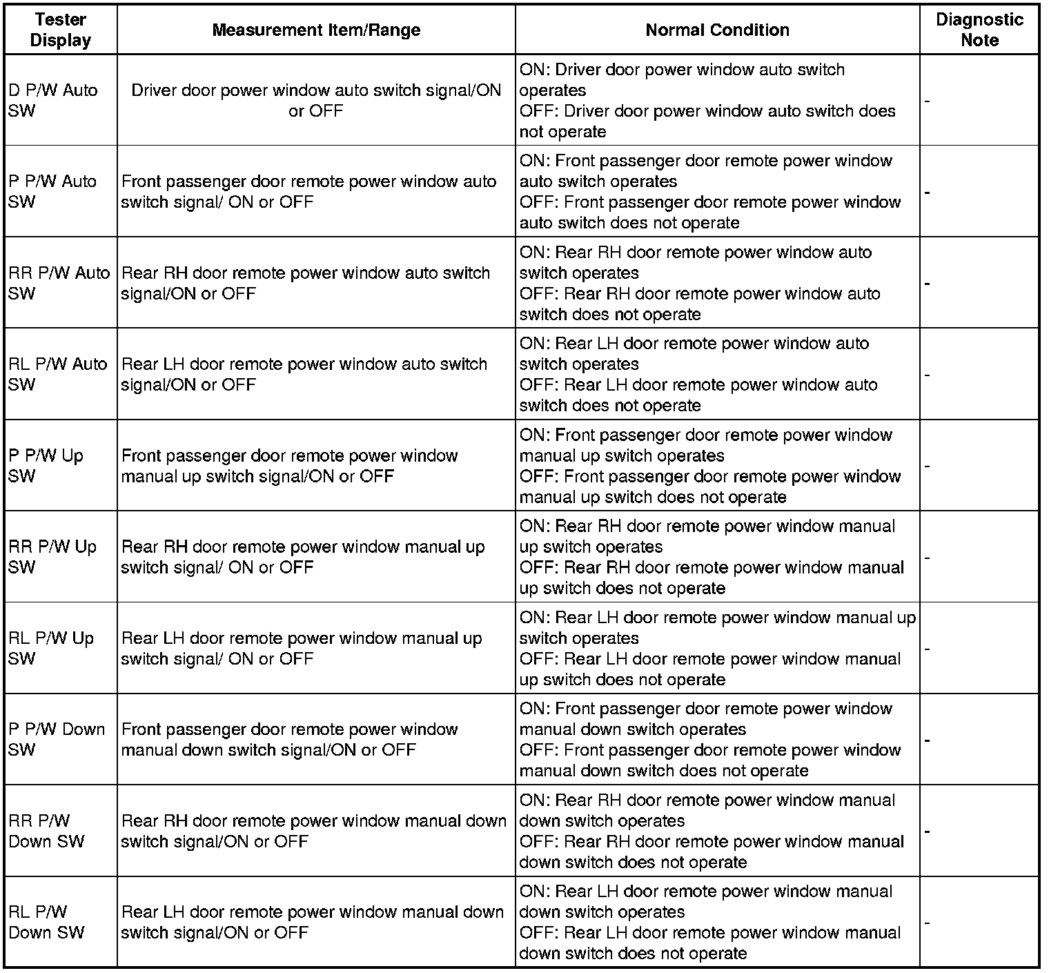WINDSHIELD / WINDOWGLASS: POWER WINDOW CONTROL SYSTEM: DATA LIST / ACTIVE TEST