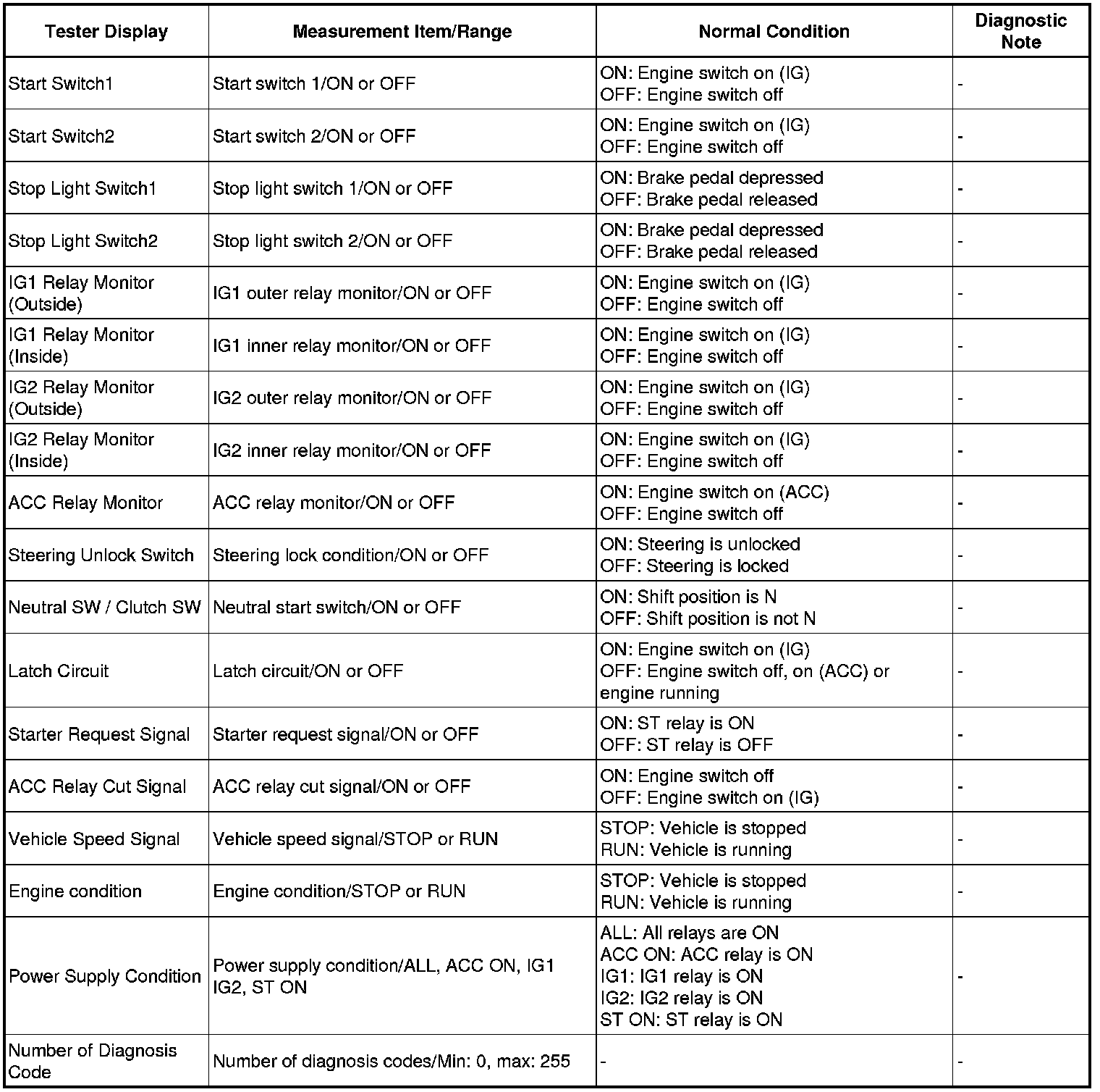 2GR-FSE STARTING: SMART ACCESS SYSTEM WITH PUSH-BUTTON START: DATA LIST / ACTIVE TEST