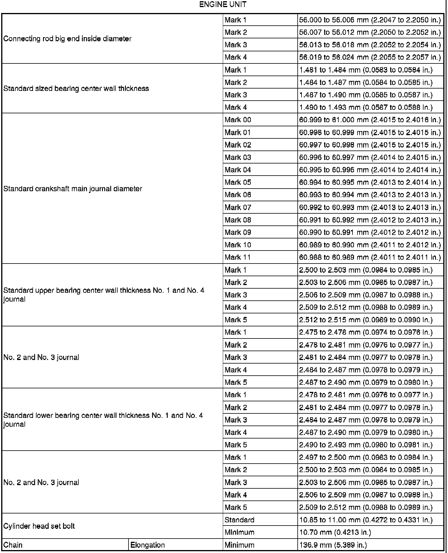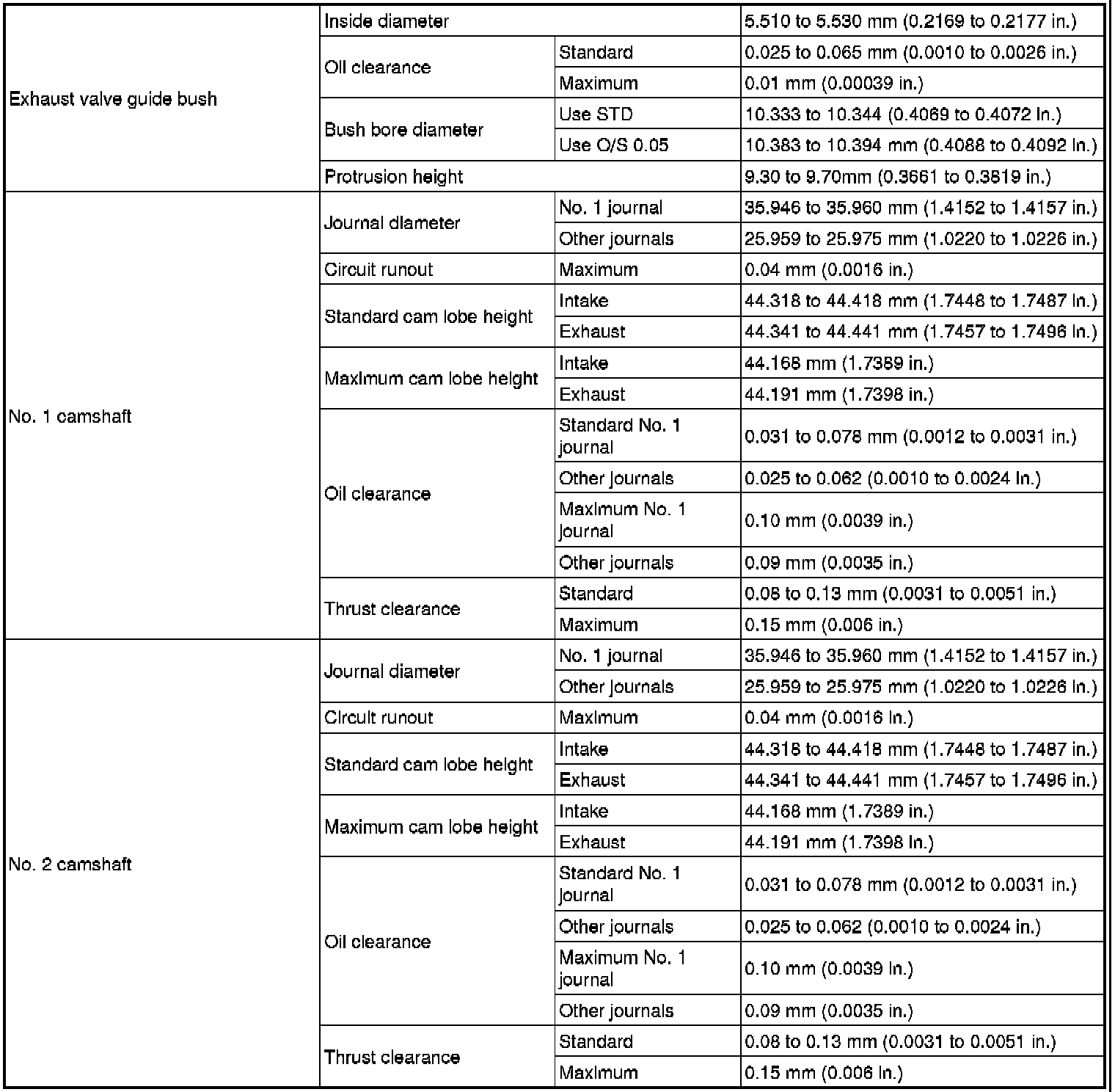 SERVICE SPECIFICATIONS: 2GR-FSE ENGINE MECHANICAL: SERVICE DATA