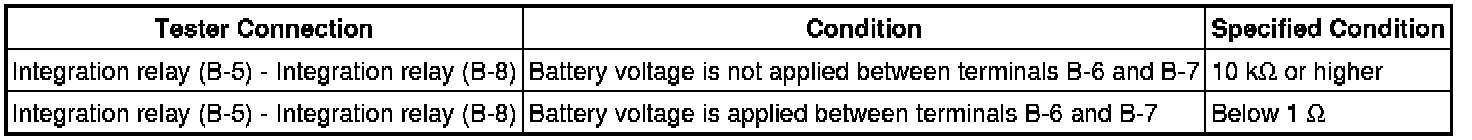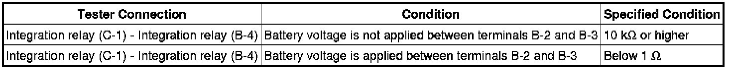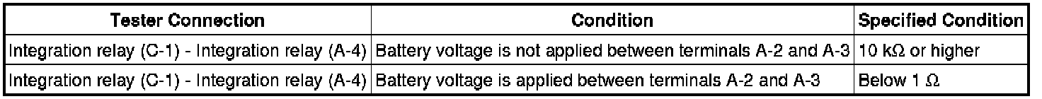 (1) If the resistance is not as specified, replace the integration relay.