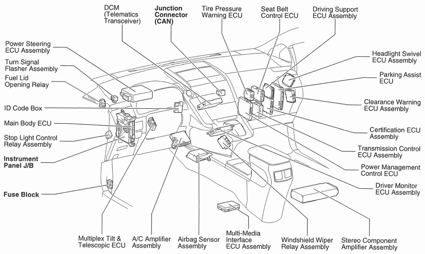 | Driver Monitor ECU Assembly | Right side of dash. See Figure. |