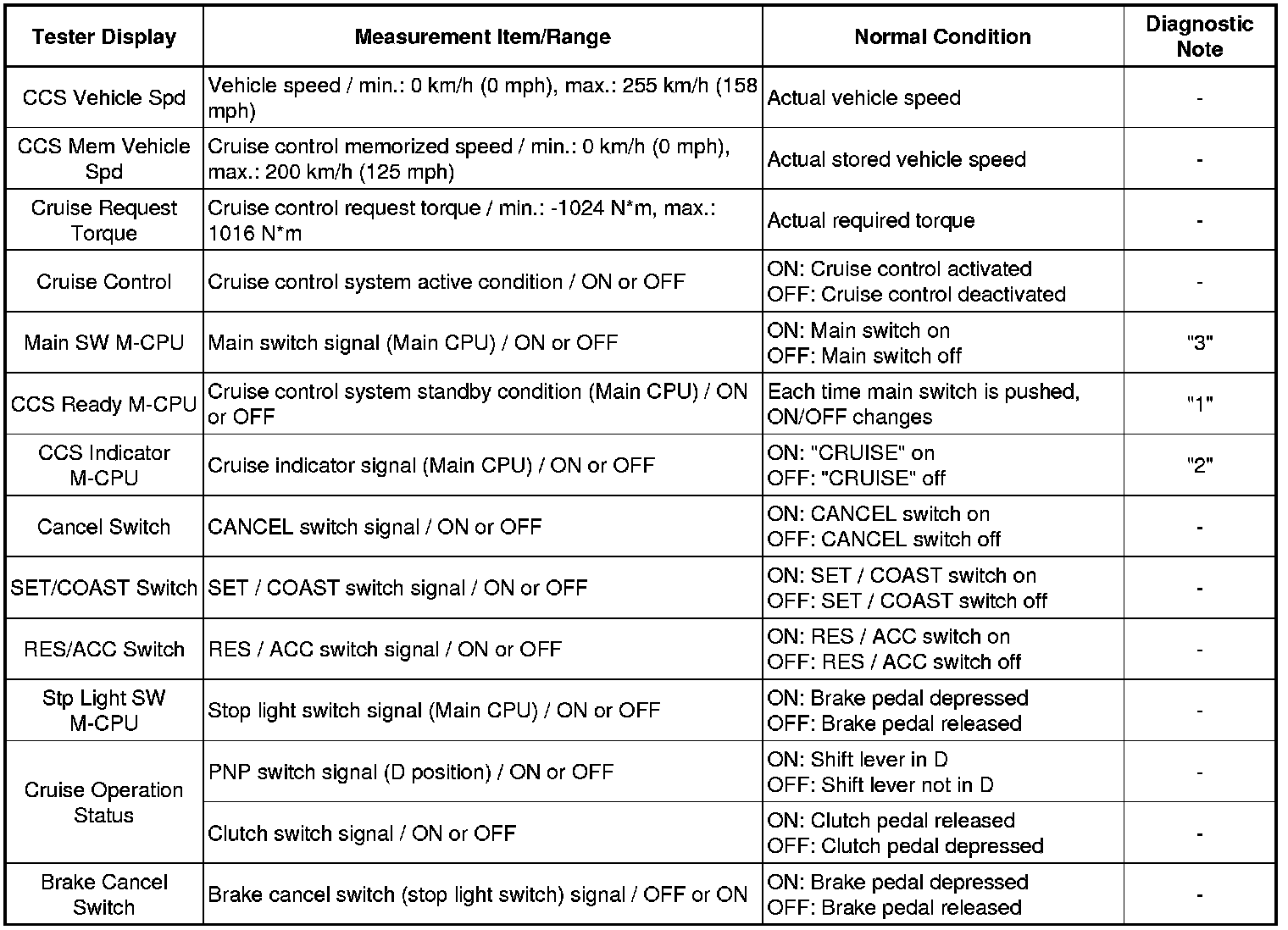 CRUISE CONTROL: CRUISE CONTROL SYSTEM: DATA LIST / ACTIVE TEST