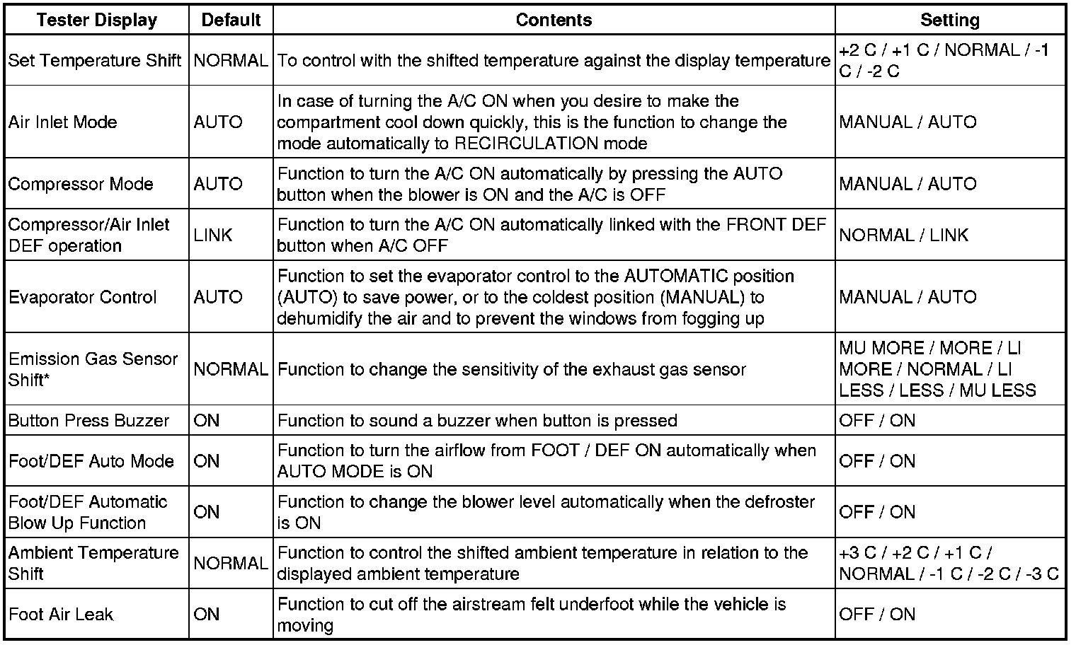 AIR CONDITIONING: AIR CONDITIONING SYSTEM: CUSTOMIZE PARAMETERS
