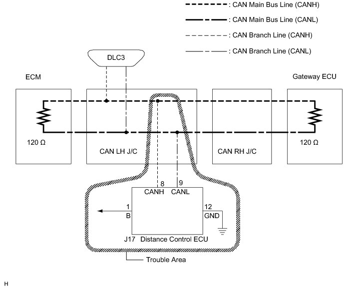 NG -- REPAIR OR REPLACE DISTANCE CONTROL ECU BRANCH WIRE OR CONNECTOR (CANH, CANL)