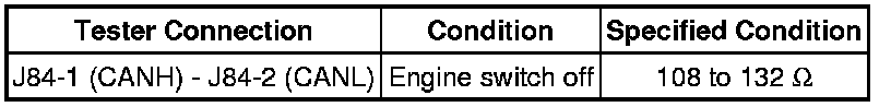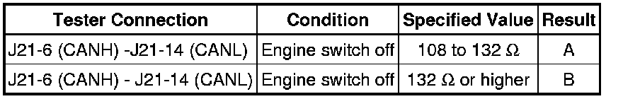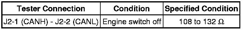 There may be an open circuit in the CAN main bus line and/or the DLC3 branch line when the resistance between terminals 6 (CANH) and 14 (CANL) of the DLC3 is 70 Ohms or more.