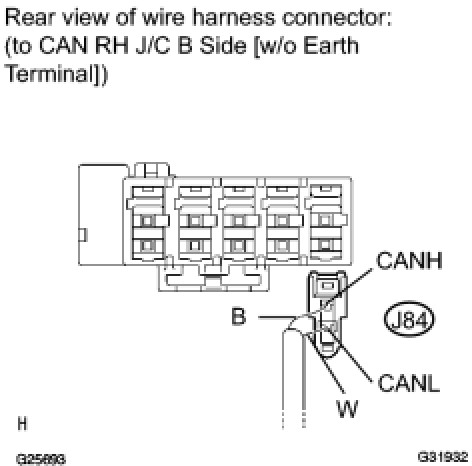 (a) Disconnect the CAN main bus line connector (J84) from the CAN RH J/C B side (w/o earth terminal).