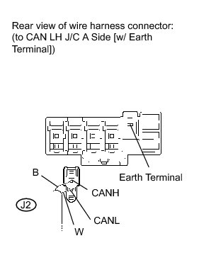 (a) Disconnect the CAN main bus line connector (J2) from the CAN LH J/C A side (w/ earth terminal).