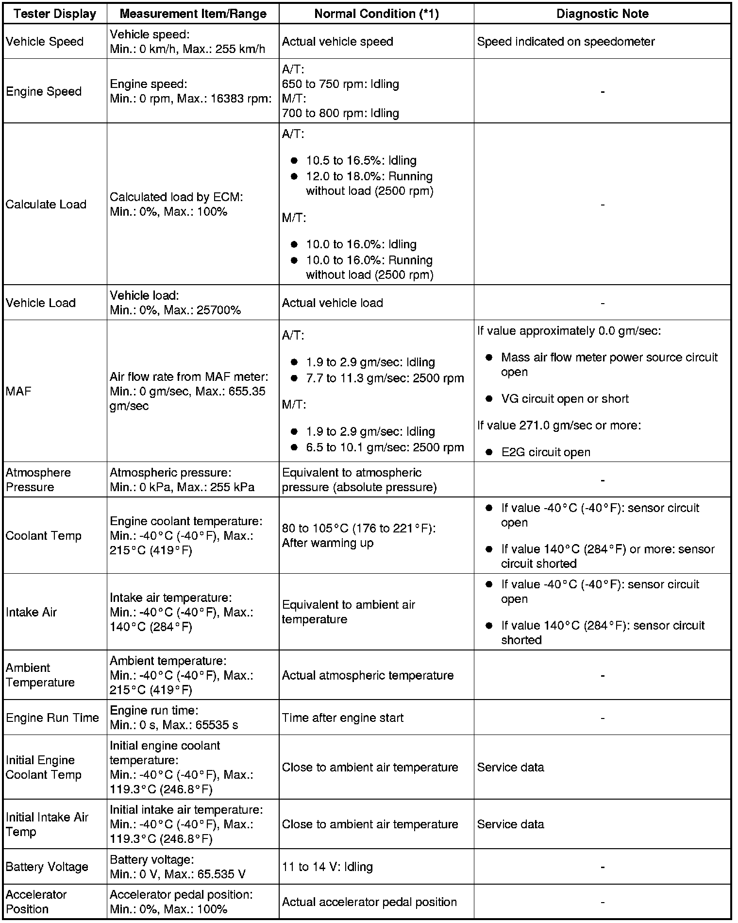 * *1: If no idling conditions are specified, the transmission gear selector lever should be in the N or P position, and the A/C switch and all accessory switches should be OFF.