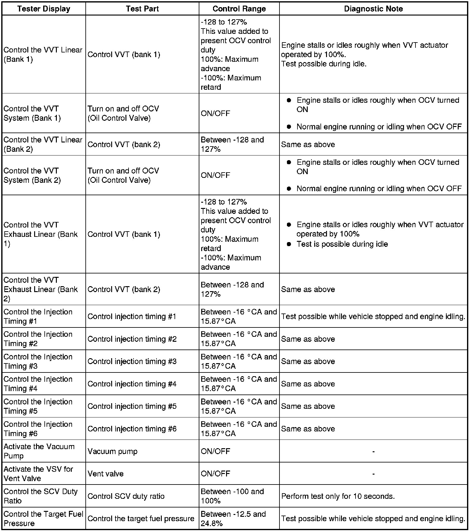 (e) Perform an Active Test by referring to the table below.