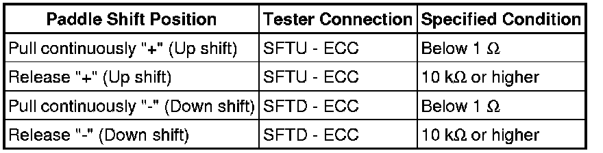 (c) If the resistance value is not as specified, replace the shift paddle switch.