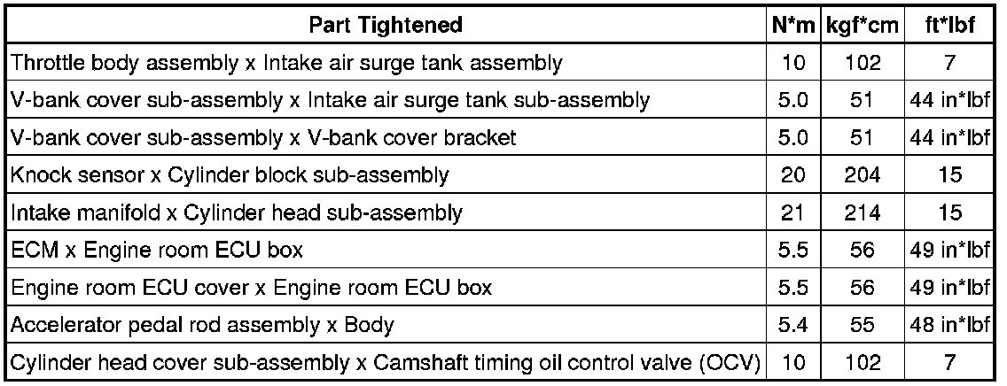 SERVICE SPECIFICATIONS: 4GR-FSE ENGINE CONTROL SYSTEM: TORQUE SPECIFICATIONS