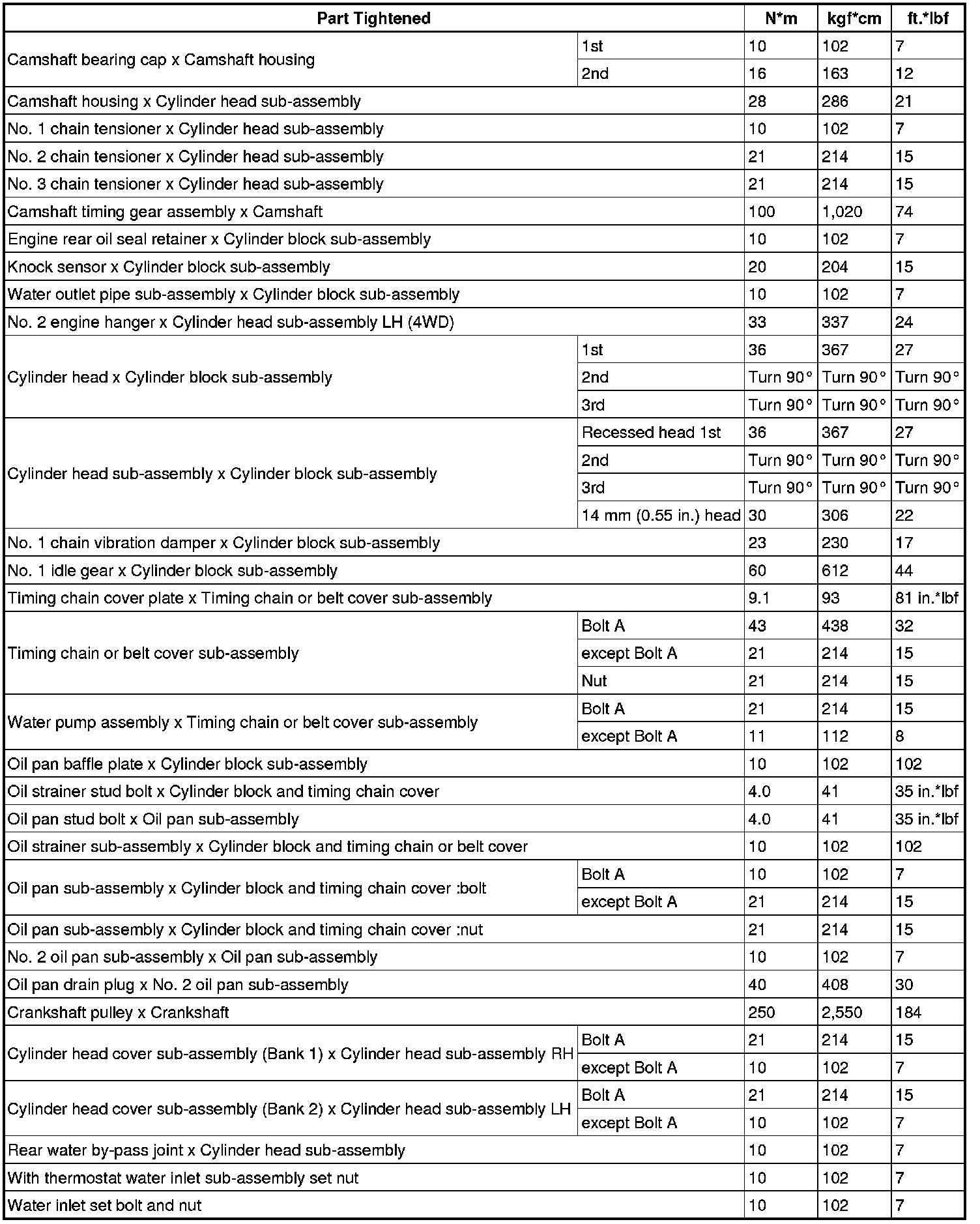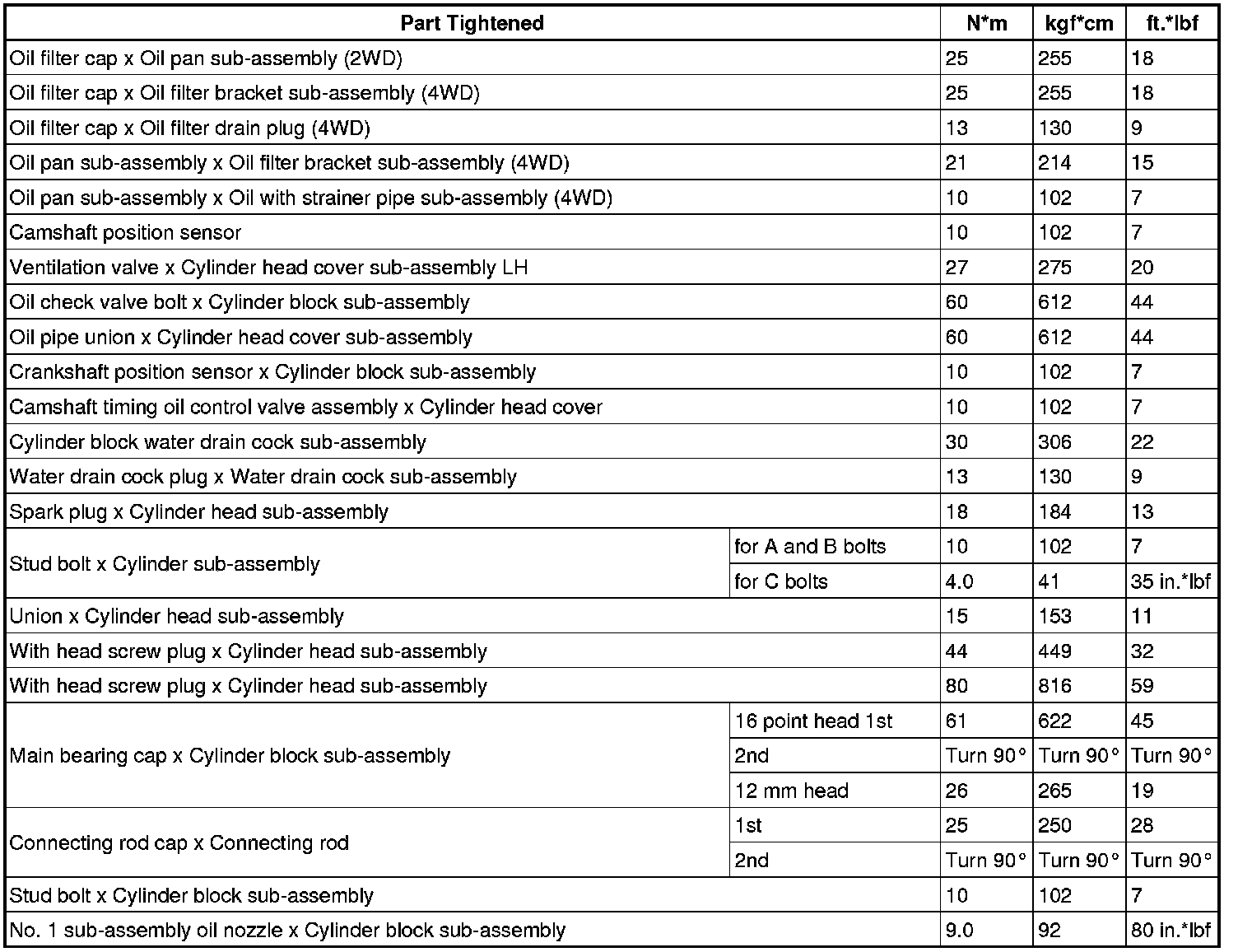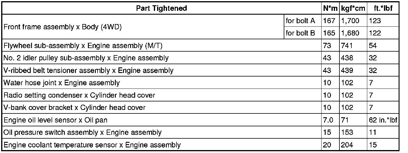 SERVICE SPECIFICATIONS: 4GR-FSE ENGINE MECHANICAL: TORQUE SPECIFICATIONS