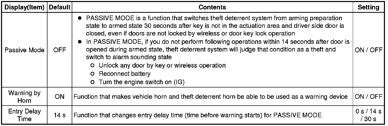 * When either the battery cable or the combination meter connector is disconnected, these buzzers are set on (enabled).