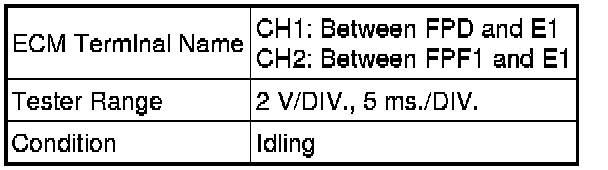 If the waveform is not similar to that shown in the illustration, check the waveform again after idling for 10 minutes or more.