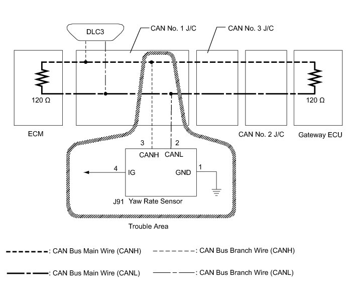 NG -- REPAIR OR REPLACE YAW RATE SENSOR BRANCH WIRE OR CONNECTOR (CANH, CANL)