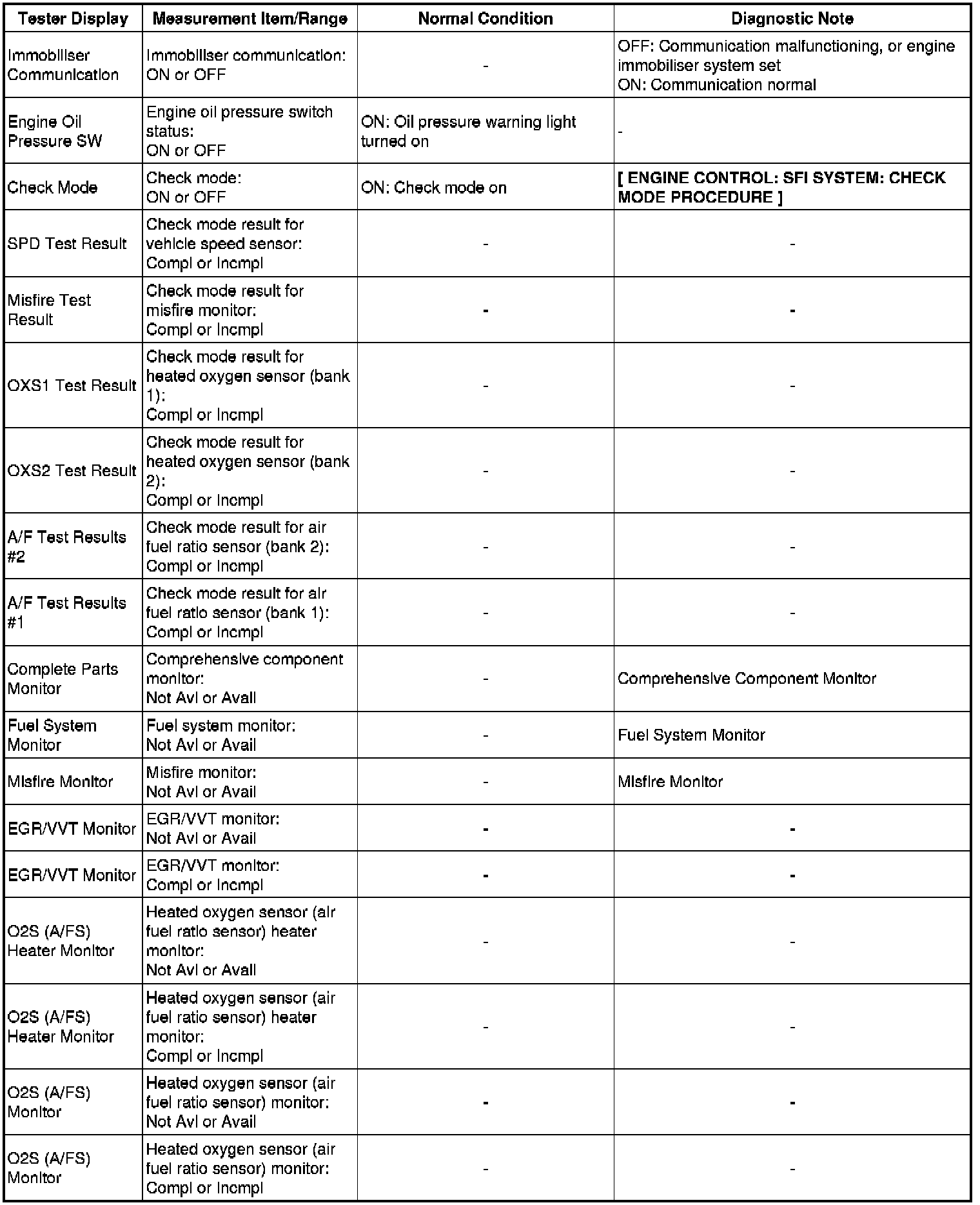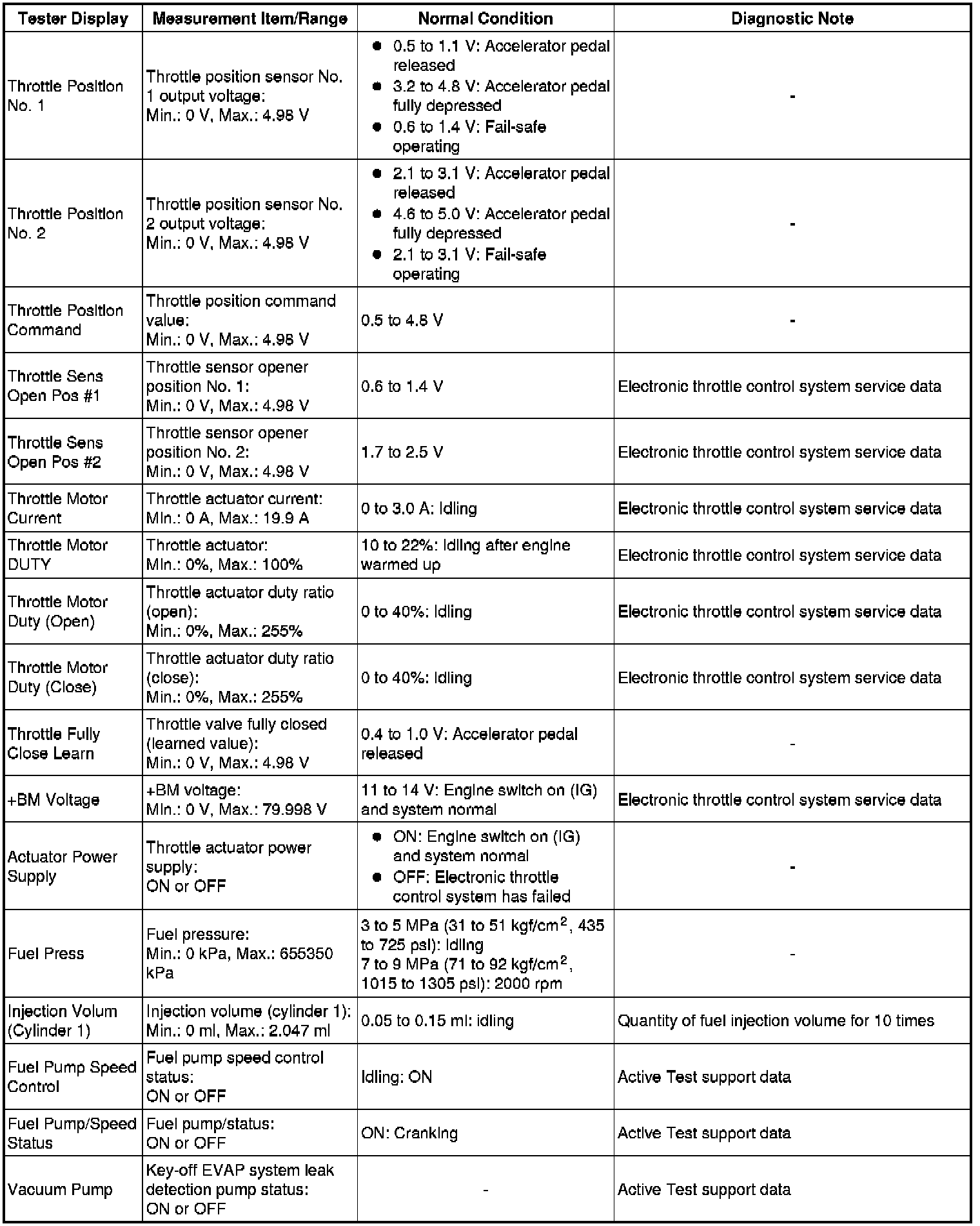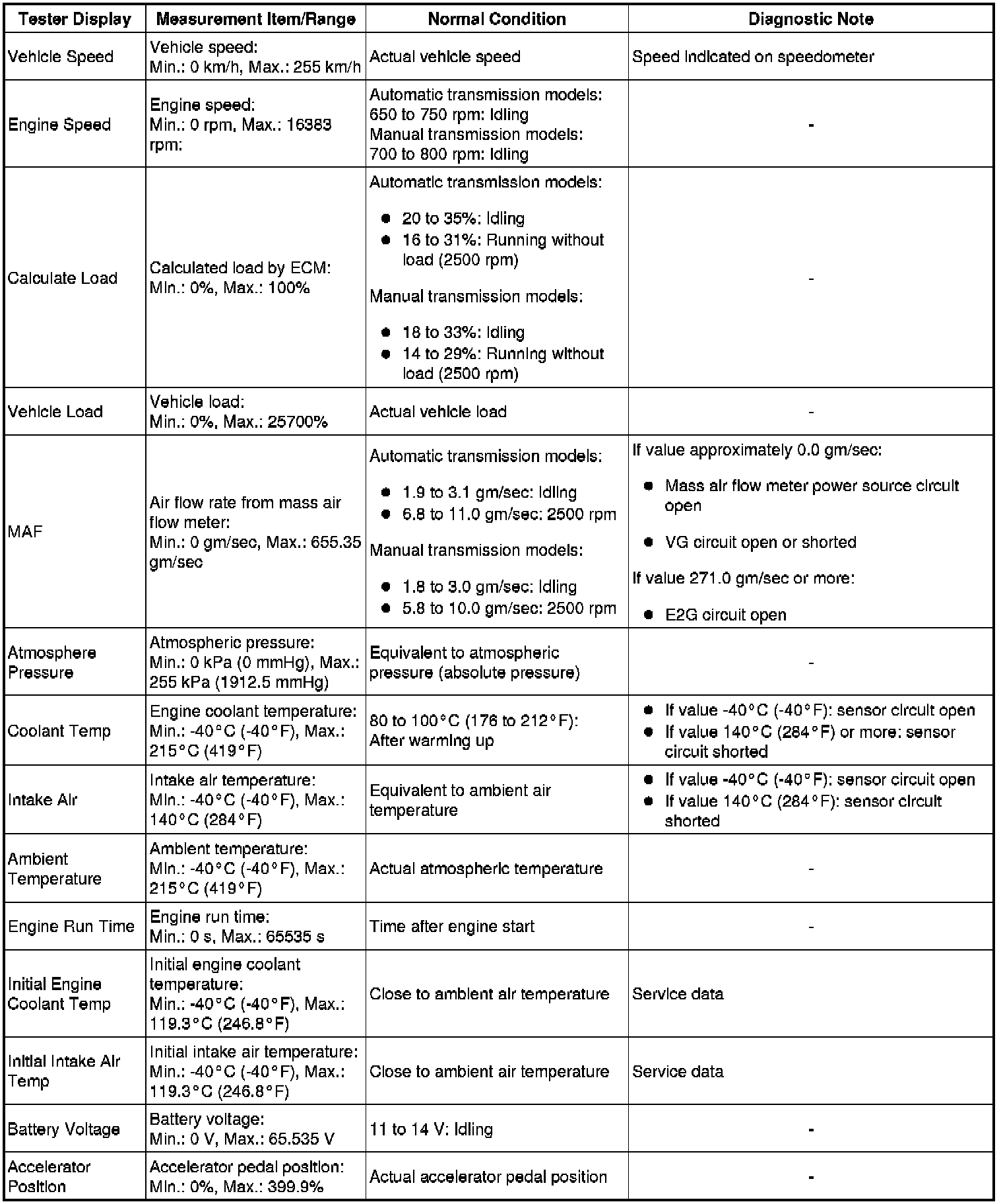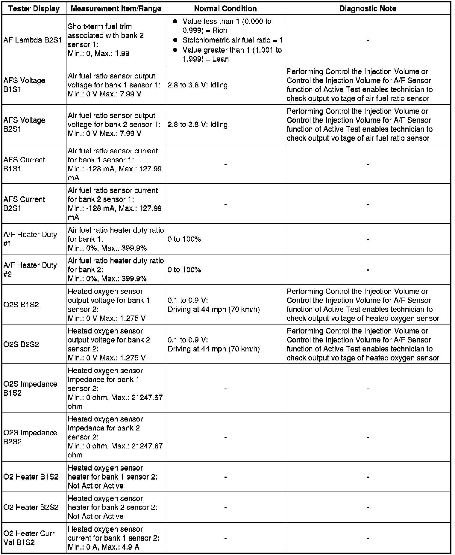 Using the Techstream to read the Data List allows the values or states of switches, sensors, actuators and other items to be read without removing any parts. This non-intrusive inspection can be very useful because intermittent conditions or signals may be discovered before parts or wiring is disturbed. Reading the Data List information early in troubleshooting is one way to save diagnostic time.