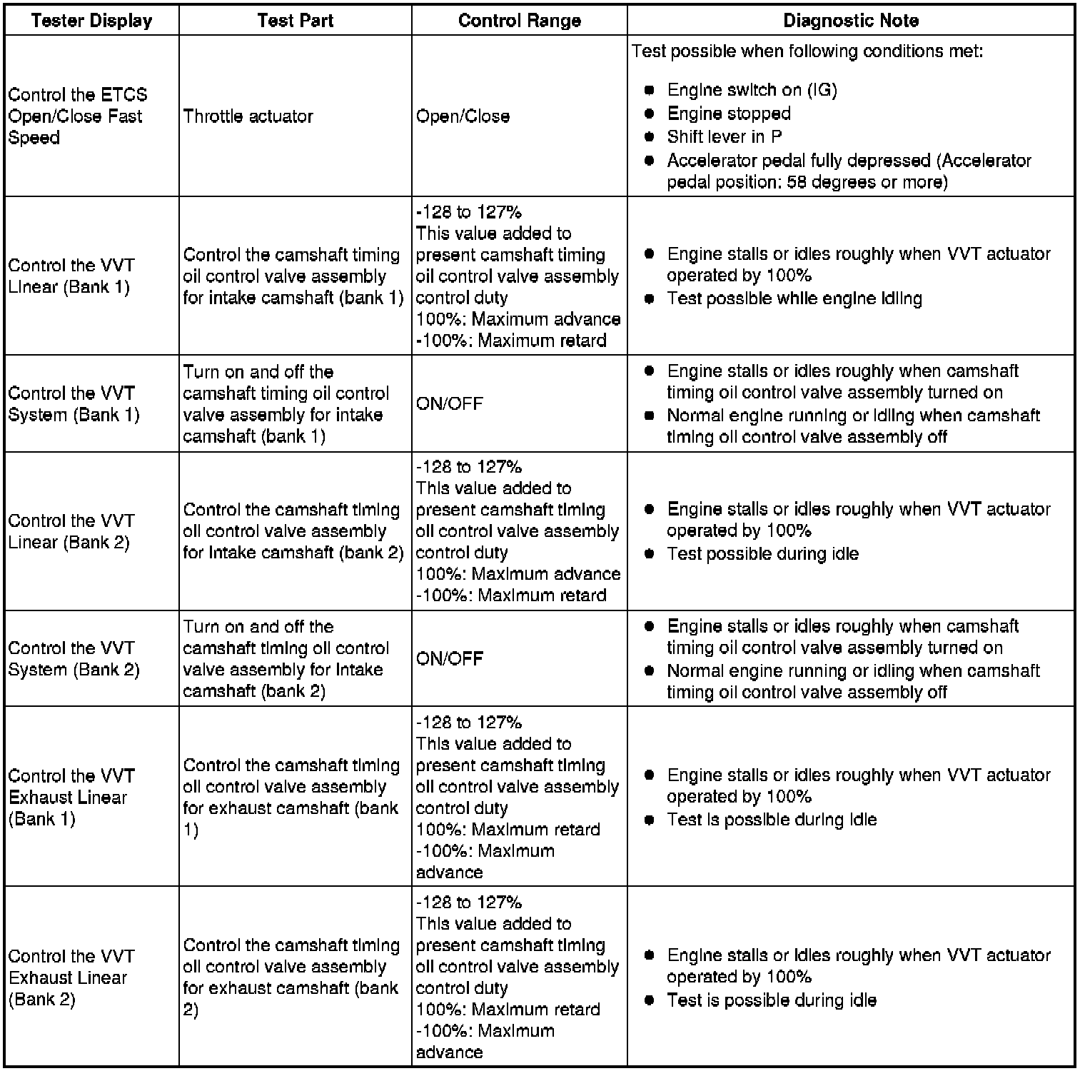 * *2: Data List values are only displayed when performing the following Active Test: Control the VVT System (Bank 1, 2), Control the VVT Linear (Bank 1, 2) and Control the VVT Exhaust Linear (Bank 1, 2). For other Active Tests, the Data List value will be 0.