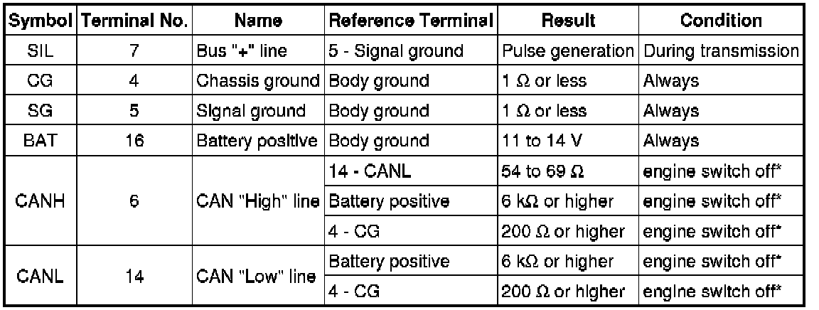 (a) If the result is not as specified, the DLC3 may have a malfunction. Repair or replace the harness and connector.