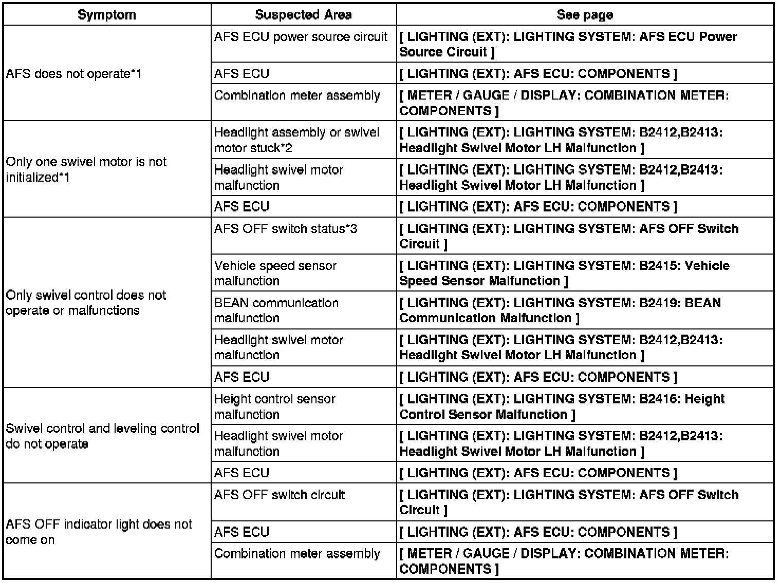 * *1: When the AFS indicator light does not come on or blink despite the symptom being occurring, check the battery voltage.
