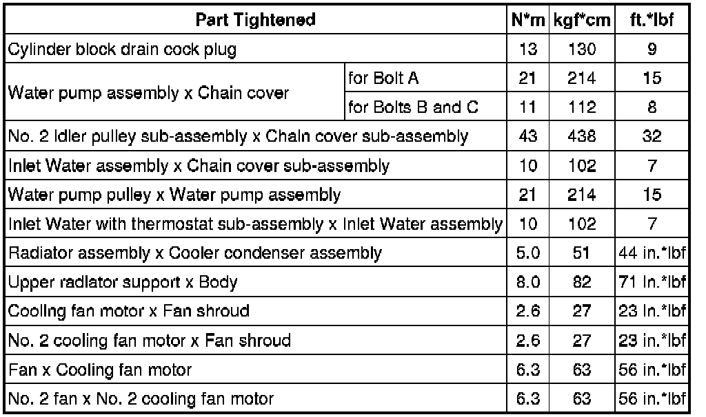 SPECIFICATIONS: 4GR-FSE COOLING: TORQUE SPECIFICATIONS