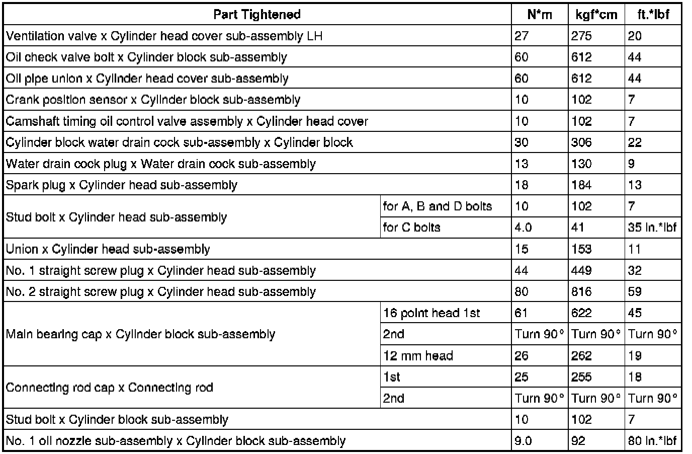 SPECIFICATIONS: 4GR-FSE ENGINE MECHANICAL: TORQUE SPECIFICATIONS