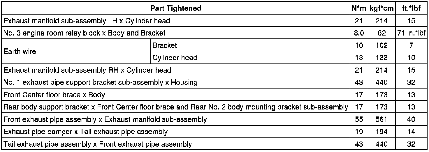 SPECIFICATIONS: 4GR-FSE INTAKE / EXHAUST: TORQUE SPECIFICATIONS