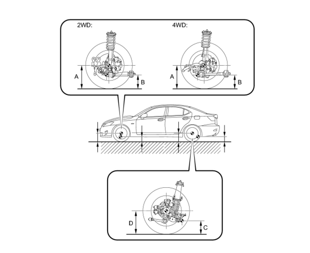 * Before inspecting the wheel alignment, adjust the vehicle height to the specified value.