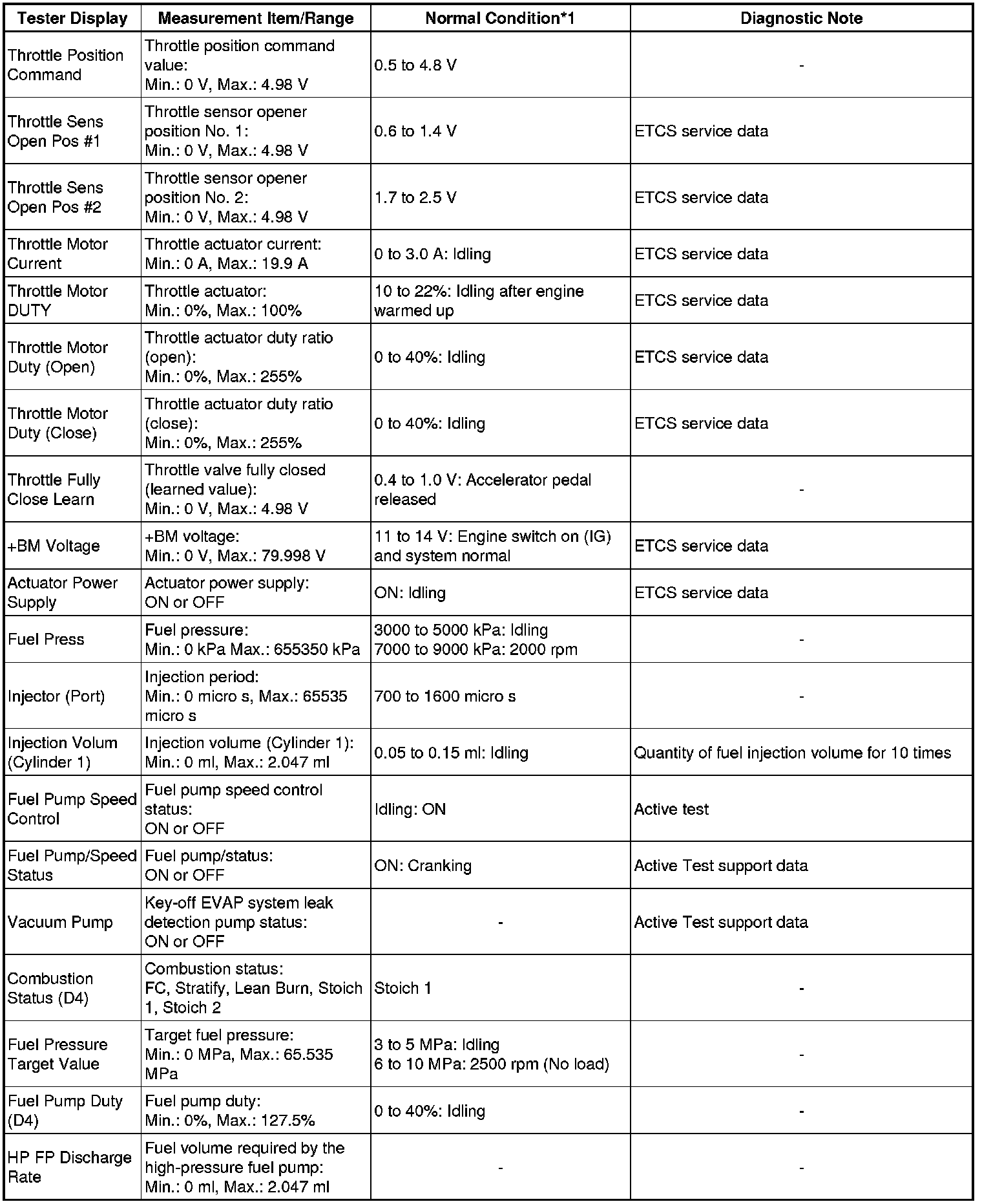 * *1: If no idling conditions are specified, the transmission gear selector lever should be in the N or P position, and the A/C switch and all accessory switches should be OFF.