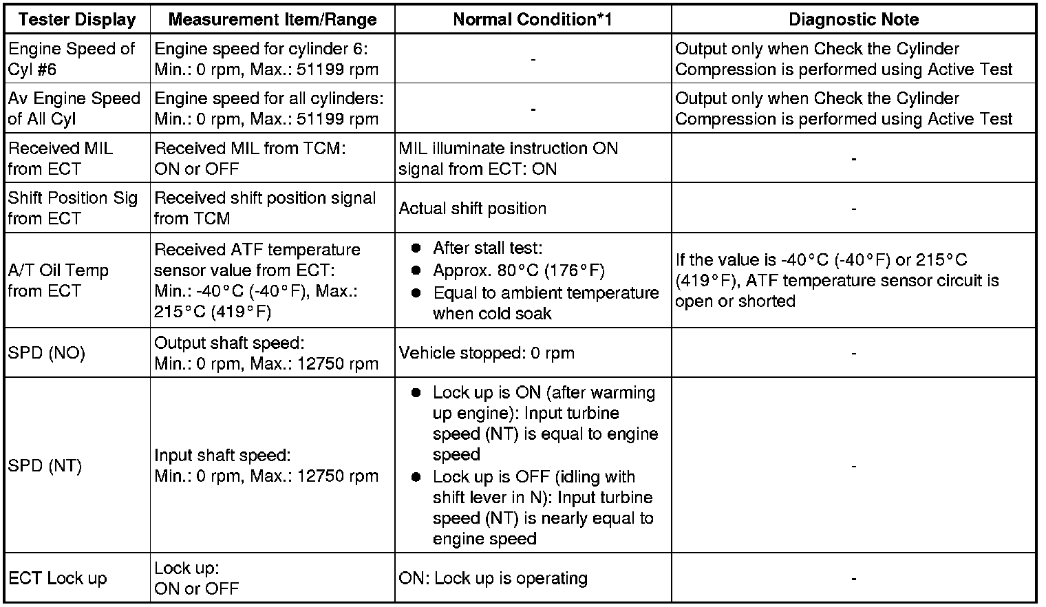 *: When cranking the engine, each cylinder measures the engine rpm. In this Active Test, the fuel and ignition of all cylinders are cut, and cranking occurs for approximately 10 seconds. Then, each cylinder measures the engine rpm. If a cylinder's engine rpm is higher than the others, that cylinder's compression pressure is compared to the others, and is determined whether it is low or not.