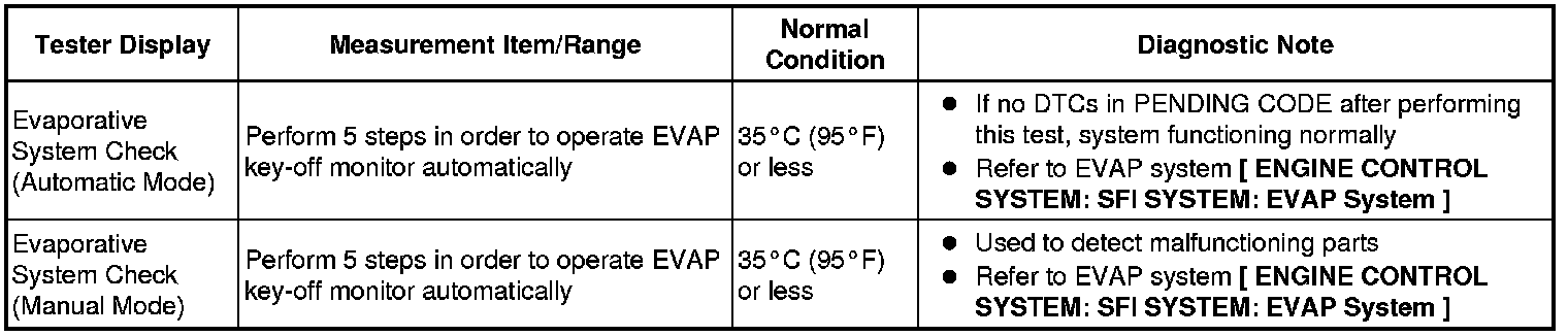 In the table below, the values listed under Normal Condition are reference only. Do not depend solely on these values when determining whether or not a part is faulty.