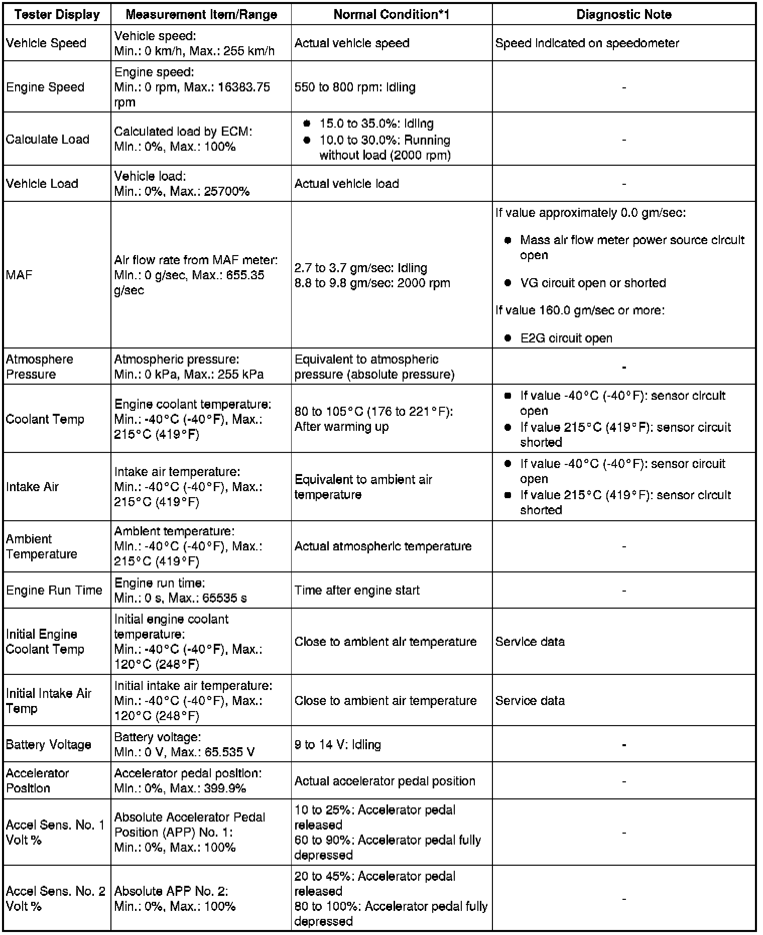 * *1: If no idling conditions are specified, the shift lever should be in N or P and the A/C switch and all accessory switches should be OFF.