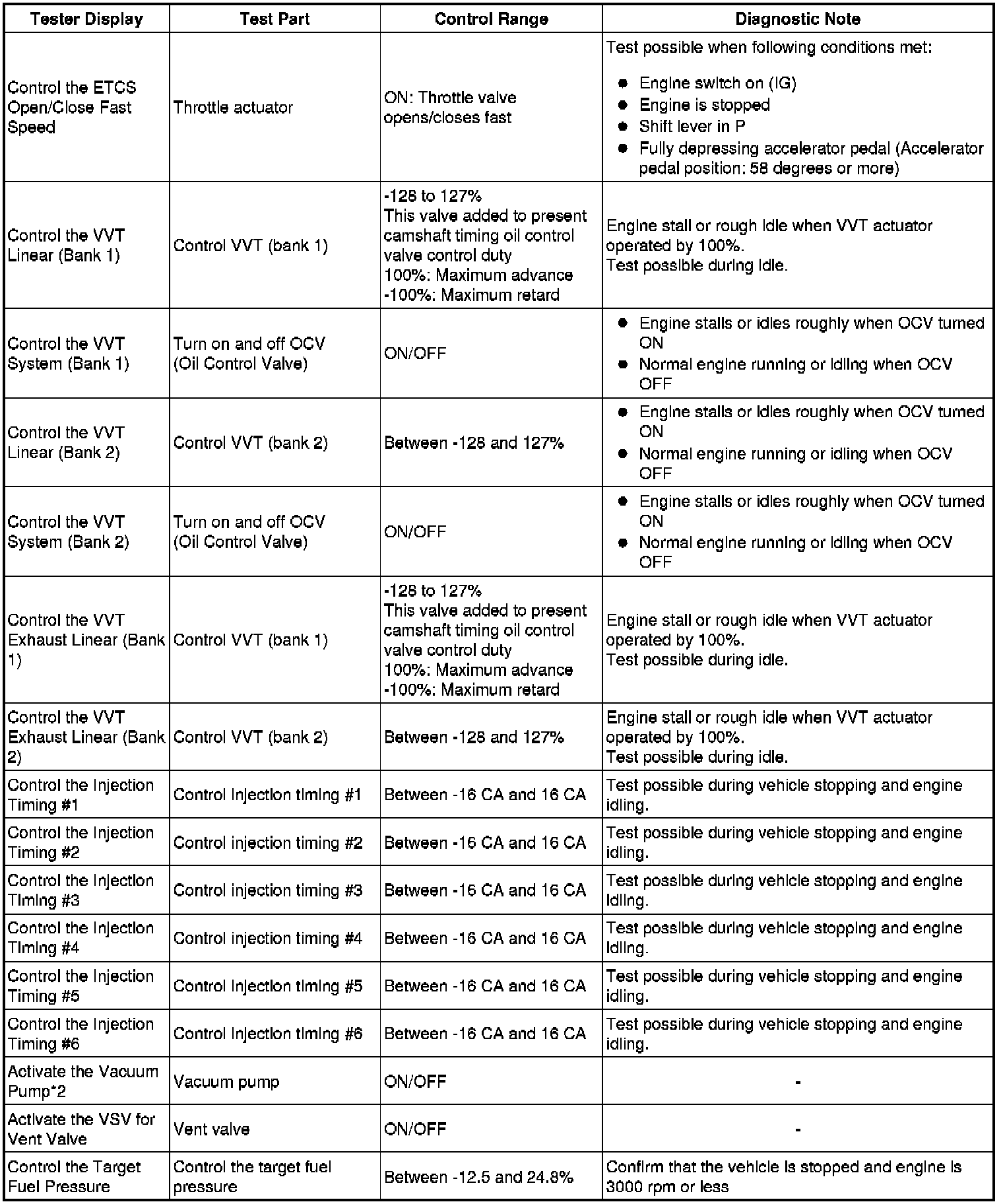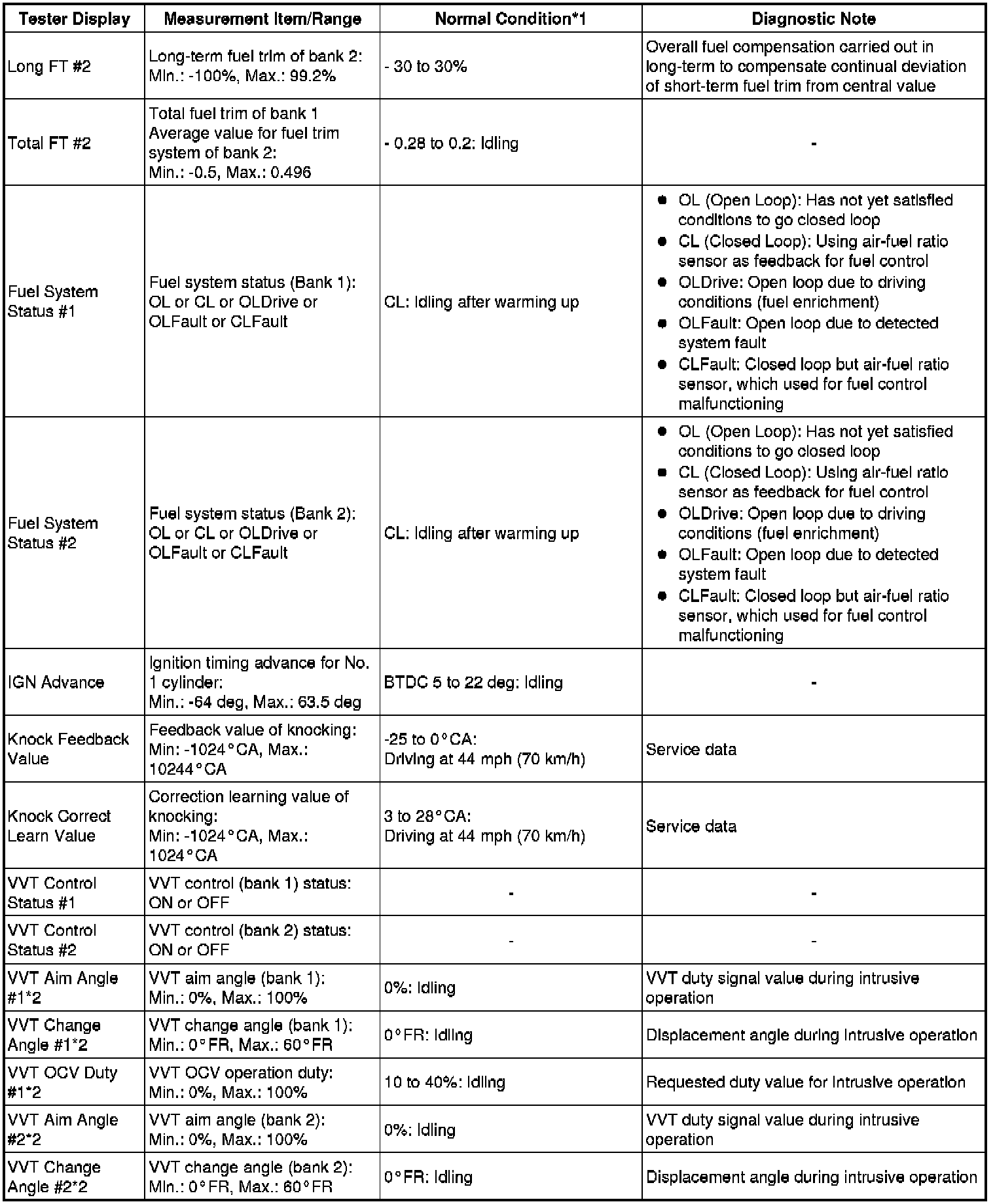 * *2: Data List values are only displayed when performing the following Active Test: Control the VVT System (Bank 1, 2), Control the VVT Linear (Bank 1, 2) For other Active Test, the Data List value will be 0.