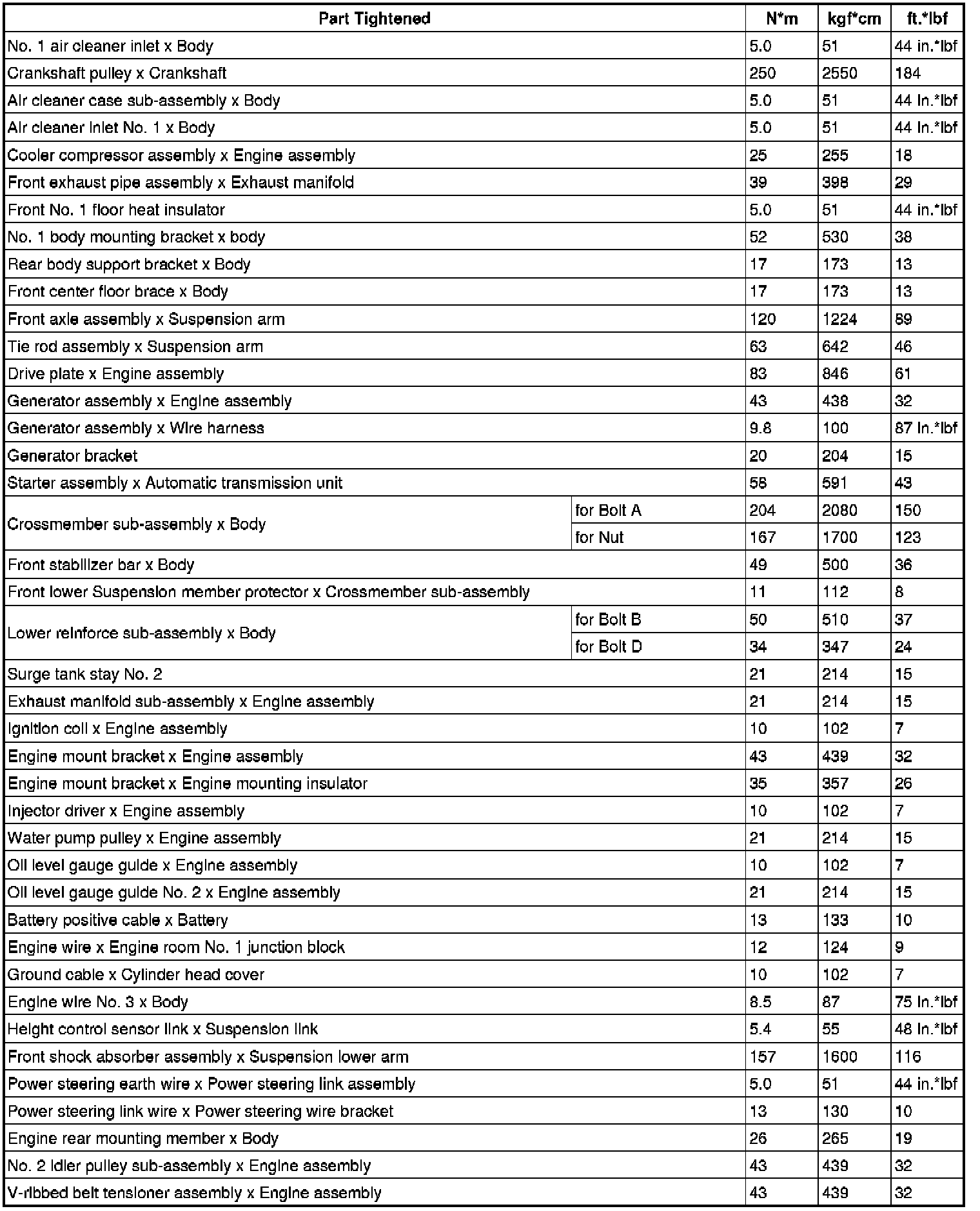 Torque Specifications