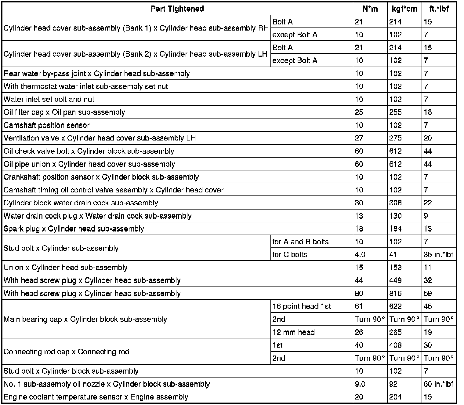 SPECIFICATIONS: 2GR-FSE ENGINE MECHANICAL: TORQUE SPECIFICATIONS