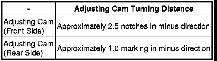 (2) Mark the adjustment value point on the adjustment table. Then obtain the adjusting cam turning distance from the adjustment table so that the adjustment value point becomes zero.