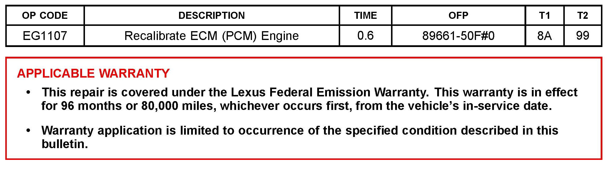 Follow the procedures outlined in TSIB No.L-SB-0015-10, "Techstream ECU Flash Reprogramming Procedure"; and flash the ECM (PCM) with the NEW calibration file update.