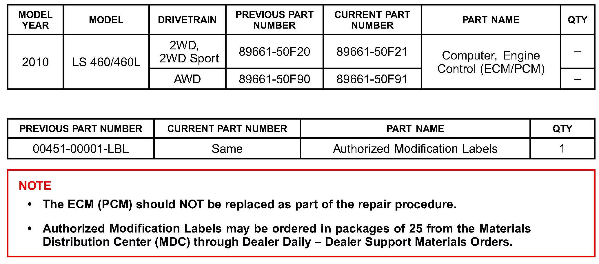 ^ ECM part number [Refer to the Parts Information section for the CURRENT PART NUMBER]