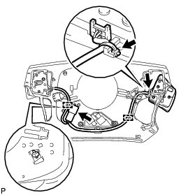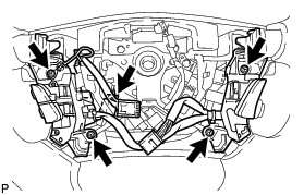 (c) Remove the 2 screws, detach the 4 claws and remove the lower steering wheel cover.