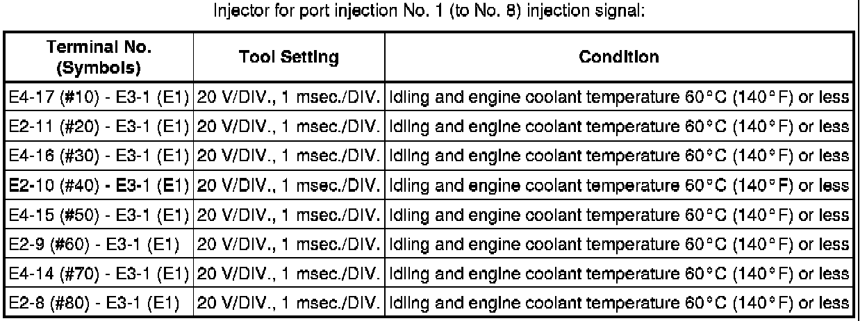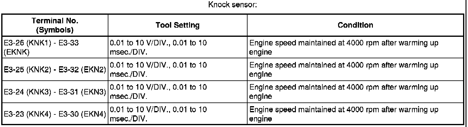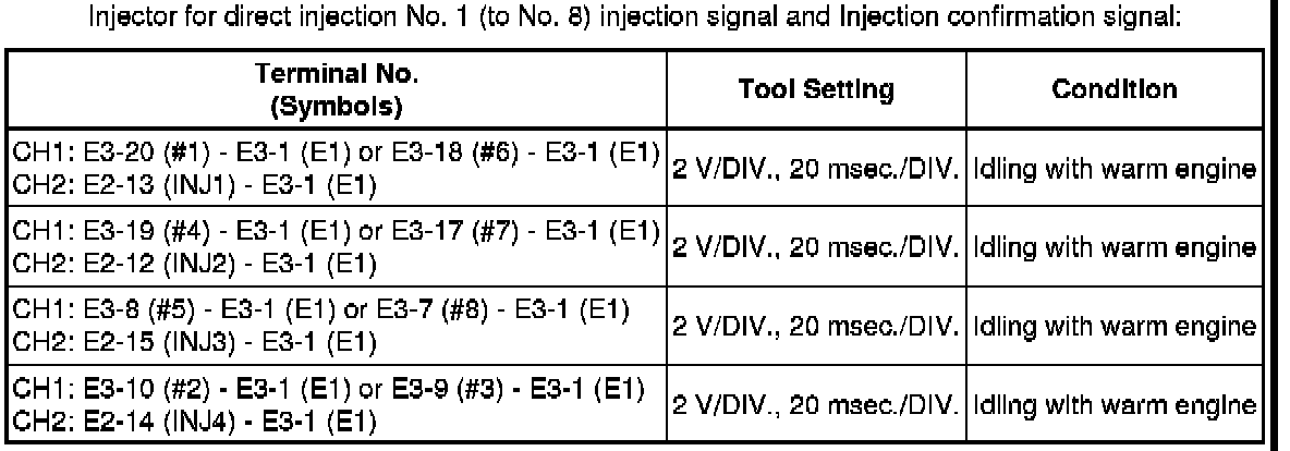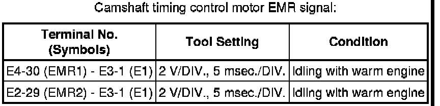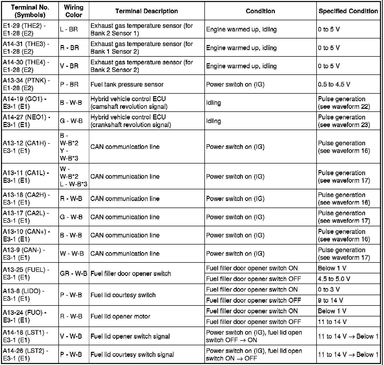 The standard normal voltage between each pair of the ECM terminals is shown in the table below. The appropriate conditions for checking each pair of the terminals are also indicated. The result of checks should be compared with the standard normal voltage for that pair of terminals, displayed in the Specified Condition column. The illustration above can be used as a reference to identify the ECM terminal locations.