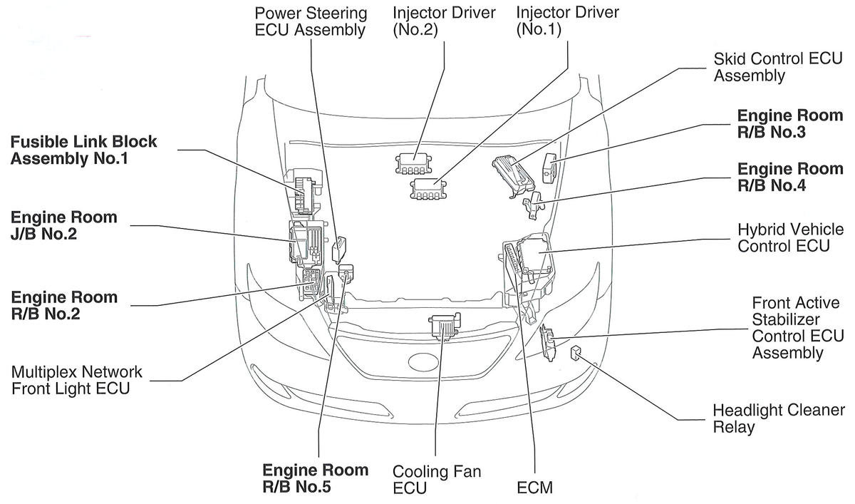 Engine Room R/B No. 5 Right front of engine compartment. See Figure.