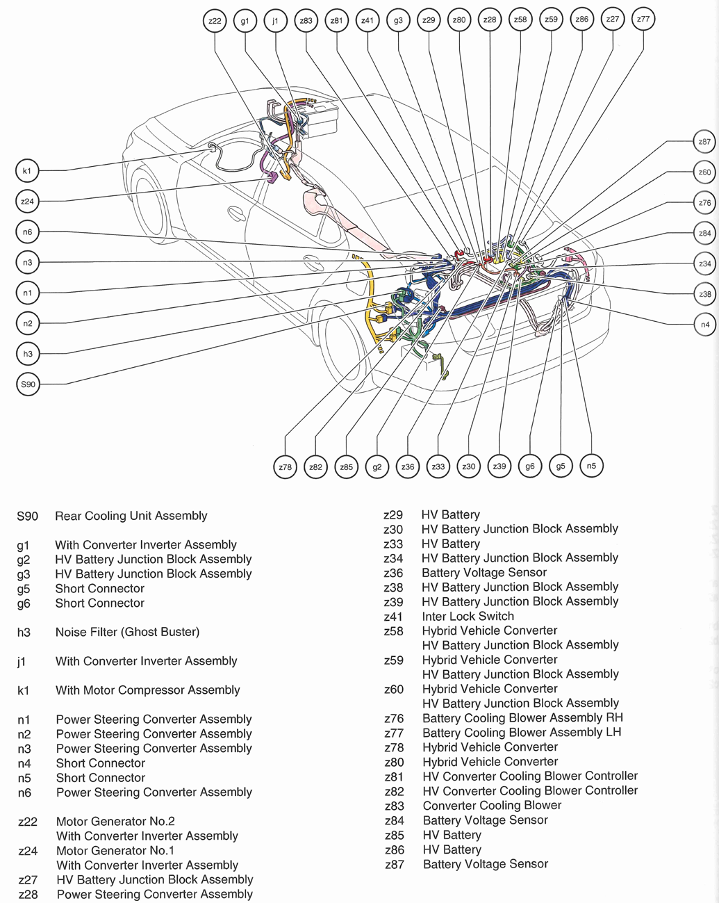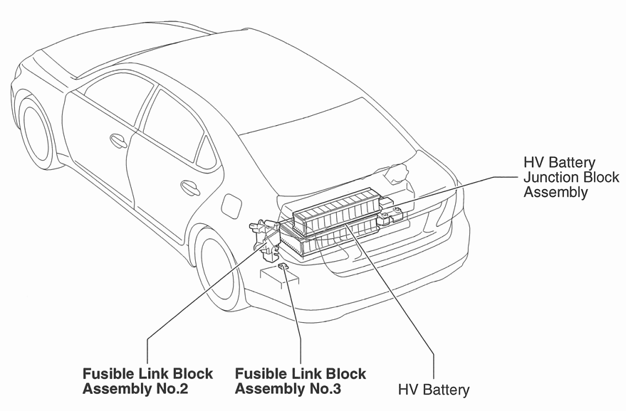 HV Battery Junction Block Assembly Right rear of vehicle chassis. See Figure.
