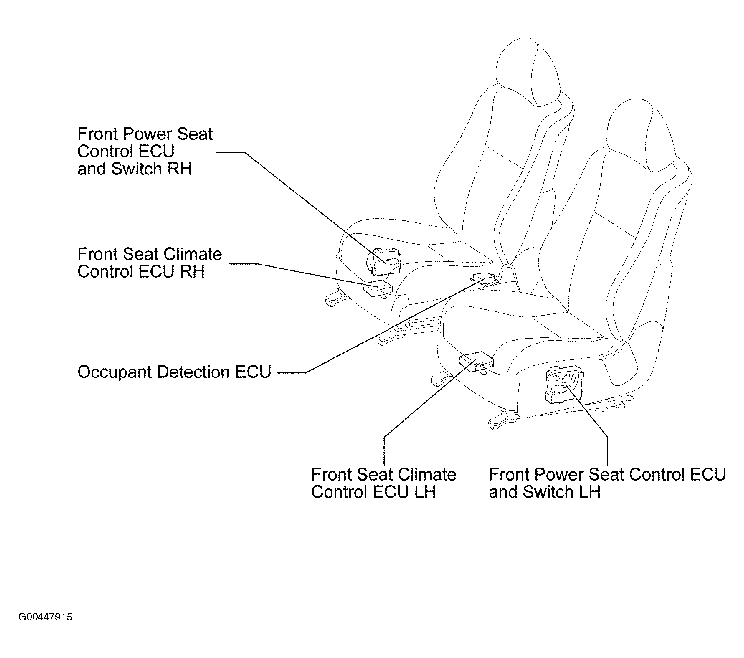 Front Seat Climate Control ECU LH Under driver's seat. See Figure.