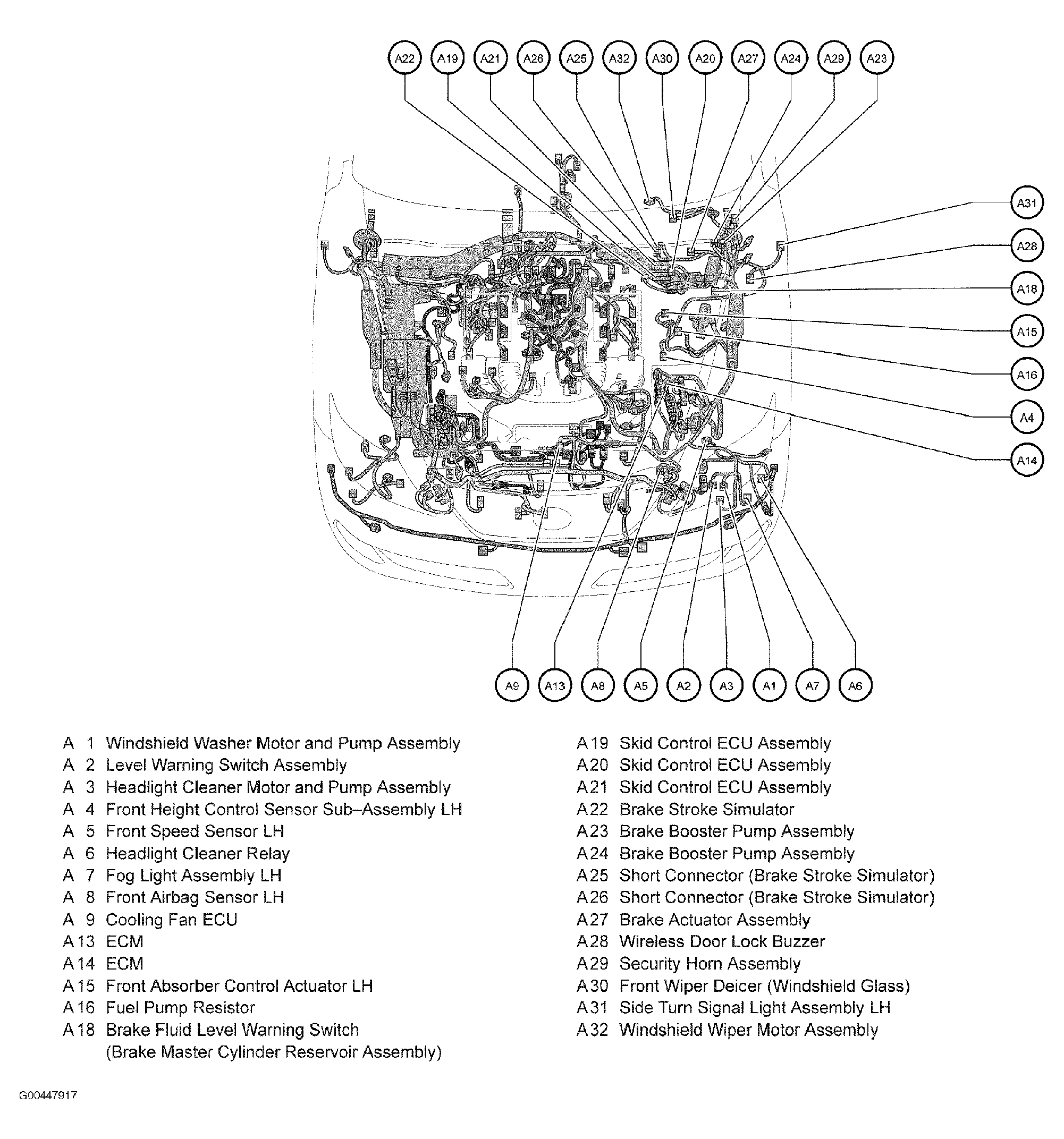 Front Active Stabilizer Control ECU Assembly Left front of engine compartment. See Figure.