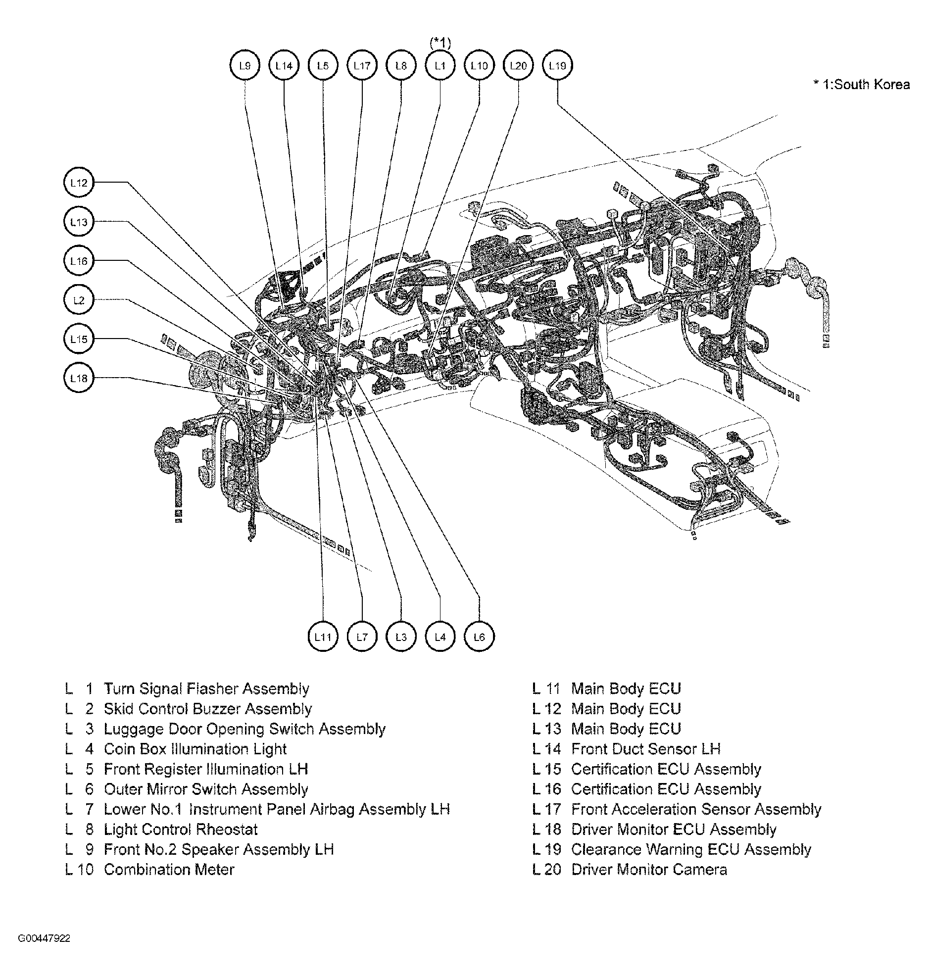 Driver Monitor ECU Assembly Left end of dash. See Figure.