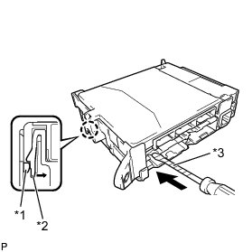 (c) Using the screwdriver, carefully raise the multiplex network body ECU up to the position where the connector becomes disengaged.