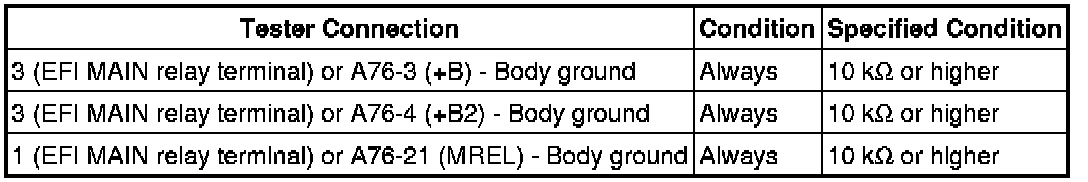 6. CHECK HARNESS AND CONNECTOR (EFI MAIN RELAY - BODY GROUND)