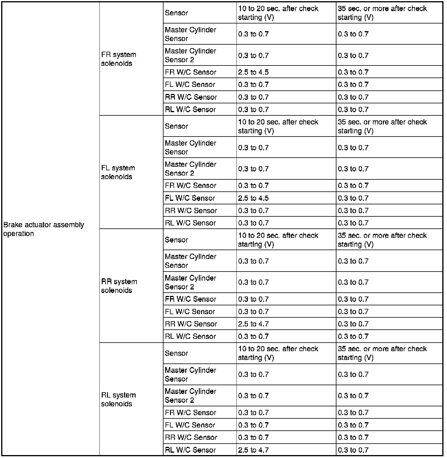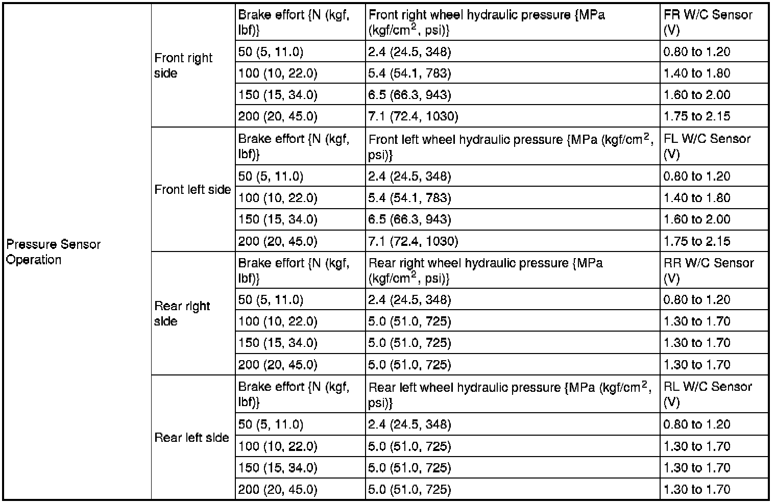 SPECIFICATIONS: BRAKE CONTROL / DYNAMIC CONTROL SYSTEMS: SERVICE DATA